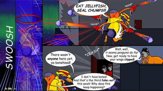 One fateful night, while Penguin P.I. Giuseppe Squawks is out to dinner with his dearest girlfriend, a seemingly random explosion takes his loved one from him. Now, aided by an octopus named Tony the Tickler, he must hunt down the Mafioso who orchestrated the accident and bring him to justice.