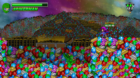 The evil alien lizard Kromatone has returned to try and take over the galaxy! And he’s brought several of his former partners in crime to help him succeed! It’s up to SpikerMan to defeat all the crime bosses and defeat Kromatone himself before he takes over everything!