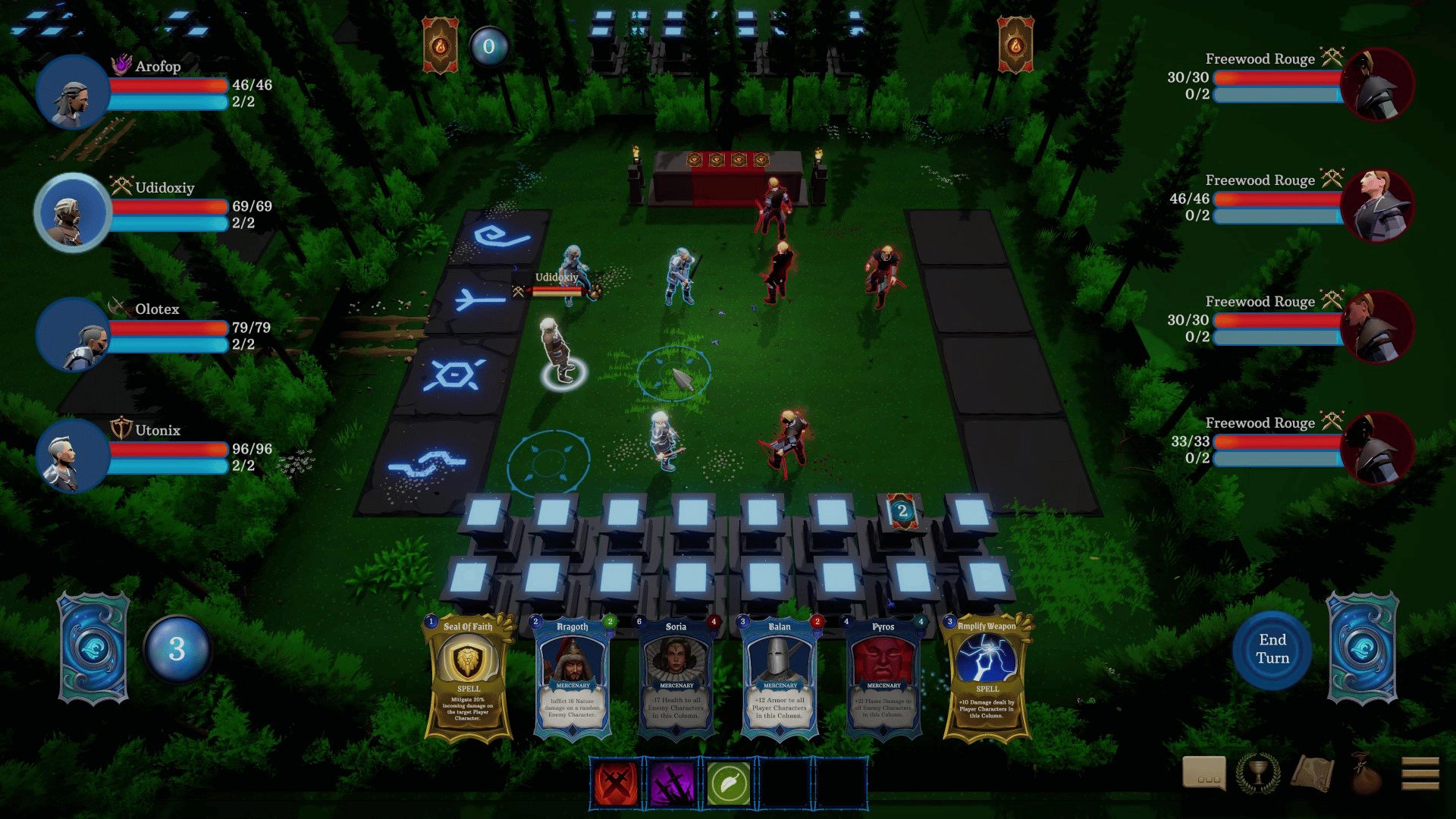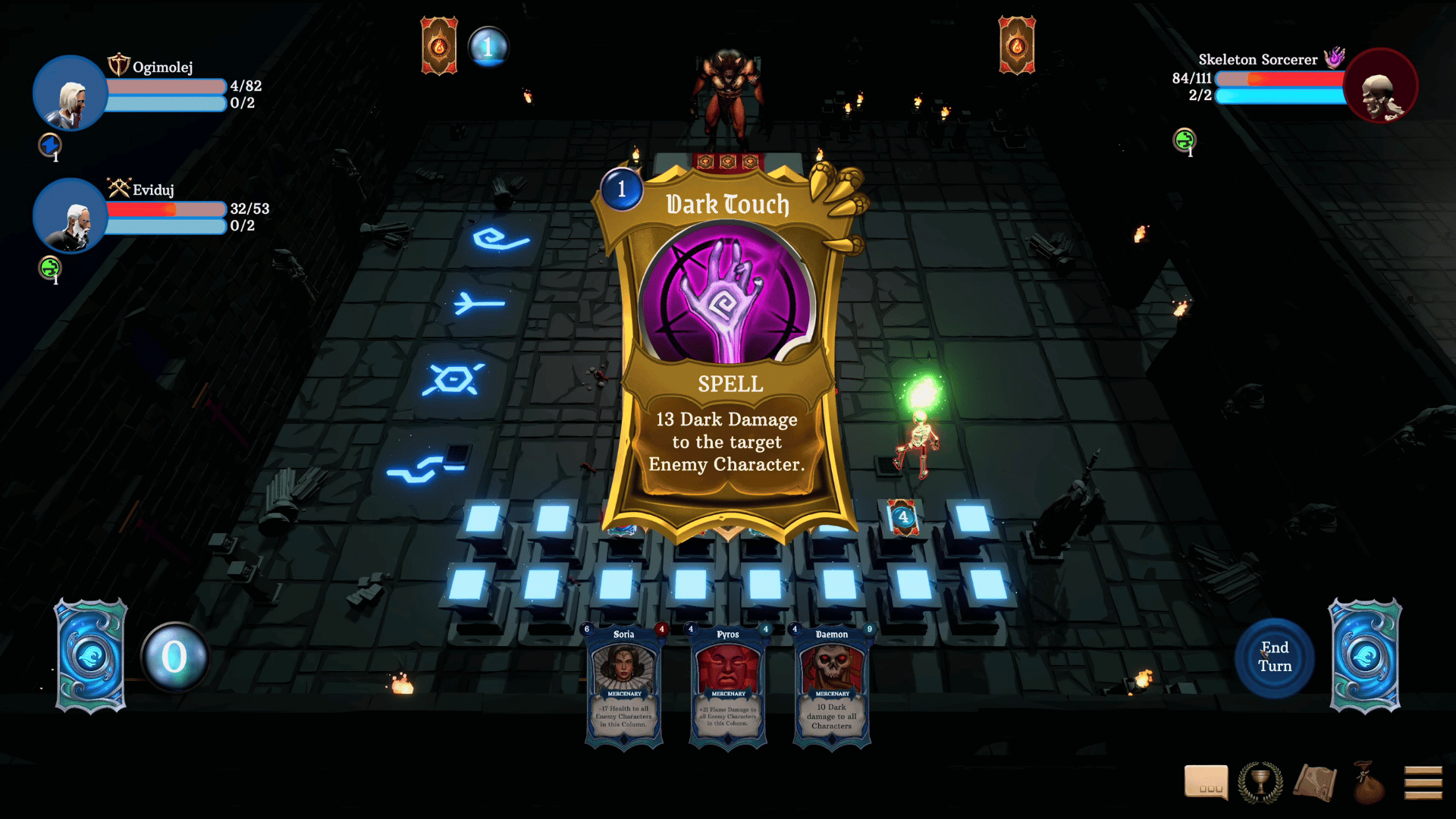 Dolven is a fantasy turn-based strategy RPG with a deep card-based battle system. Following the events of The Necromancer’s scourge upon the northern townsfolk, guide a band of mercenaries through the Decaying Isles in order to rid the land of evil. Use the Pillars to create a variety of combos to earn mana and gain advantage over the recent evil plaguing the land of Dolven. Card battles include hand-to-hand combat, where the cards provide characters with additional skills. The Pillars allow you to create various hand combinations that range from matching cards and suits, playing a pivotal role in your quest to accumulate more Mana, Gear, Cards, Skills and even exerting influence over the game's environment. Strategic planning is of utmost importance.