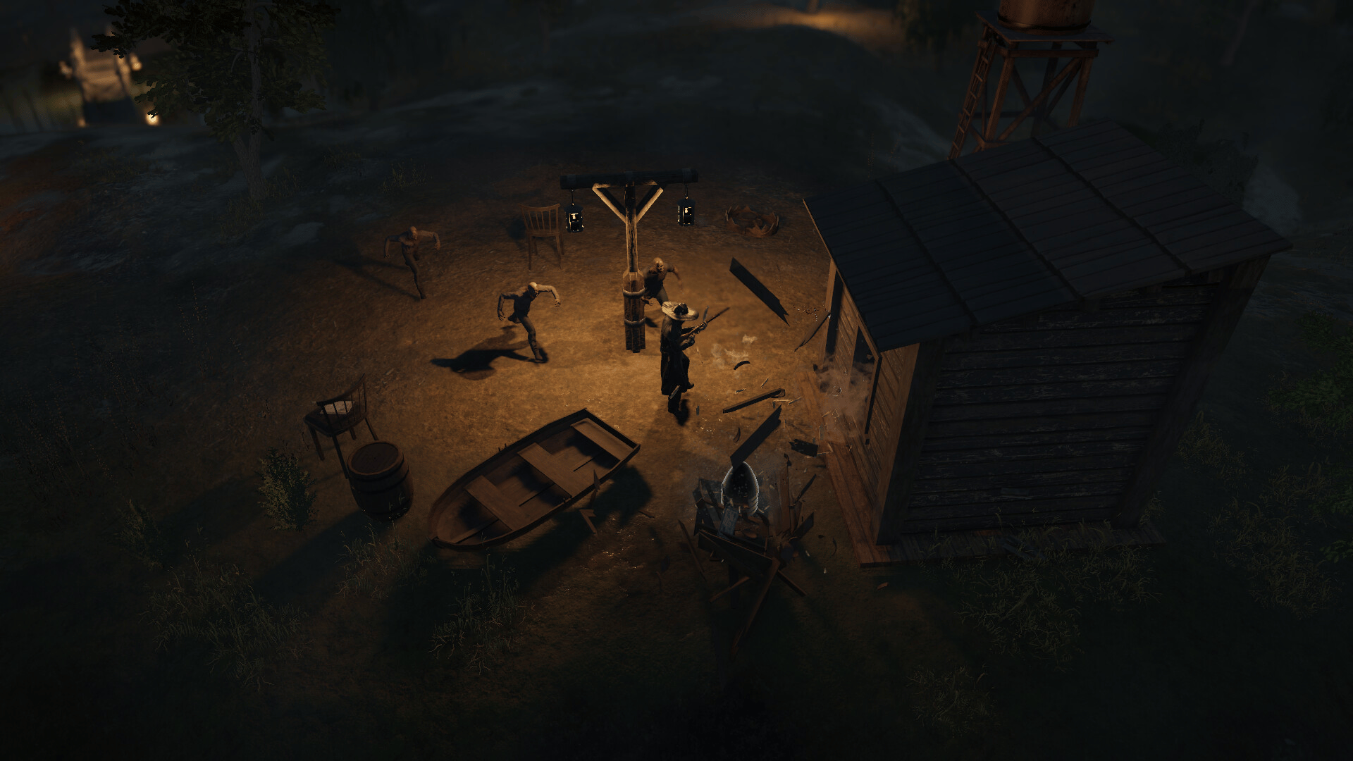 An action packed endless wave zombie shooter with elements of tactics and resource management.