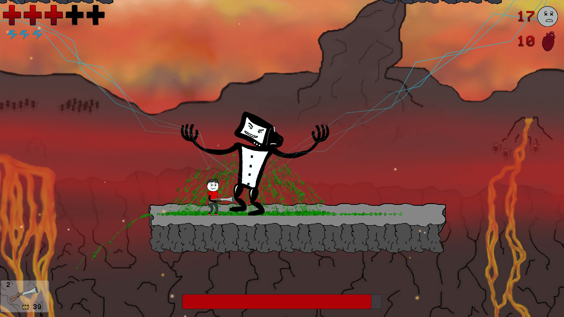 You are dead. Welcome to the IT Hell where you have to fight developers, critical bugs and your old equipment to make you way through it. Armed with your keyboard...and some guns, advance through different levels, upgrade your stats and reach the final boss!