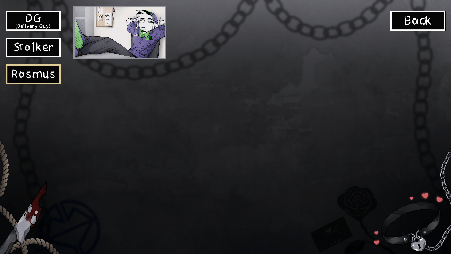 Eventually, we're all just gonna break. You are a cashier at a convenience store, depressed and lonely with your mundane life, hoping for a bit of excitement. One day you meet a peculiar stranger who's sweet and shy at first, but one kind gesture is all it takes to make him stalk admire you a bit too much and be a danger to everyone else around you. Be careful how you treat him and others, for pain and death will follow you like a shadow. But perhaps fate has other plans for you...