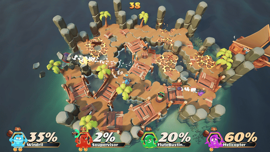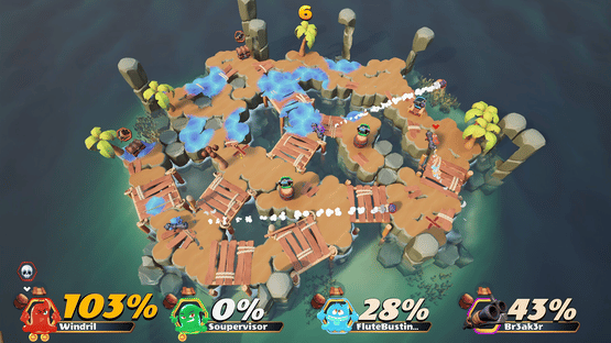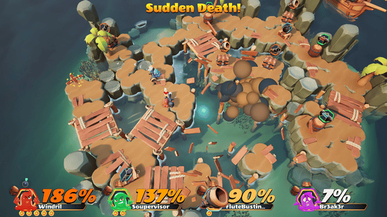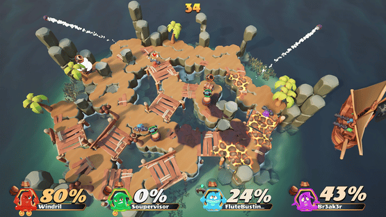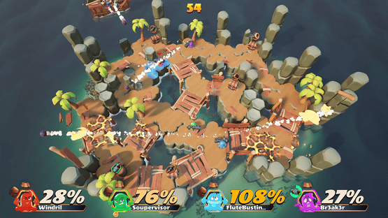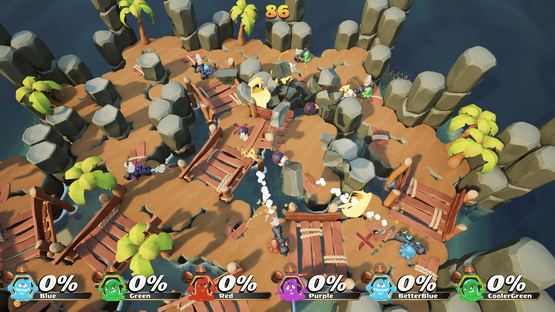 Slimes Cannon Combat is a chaotic PvP arena game with 2-6 players. Challenge your friends in a top-down shooter where you try to blast them off the island using a variety of powerups that you combine for even more mayhem. Can you be the last slime standing as the island collapses around you?