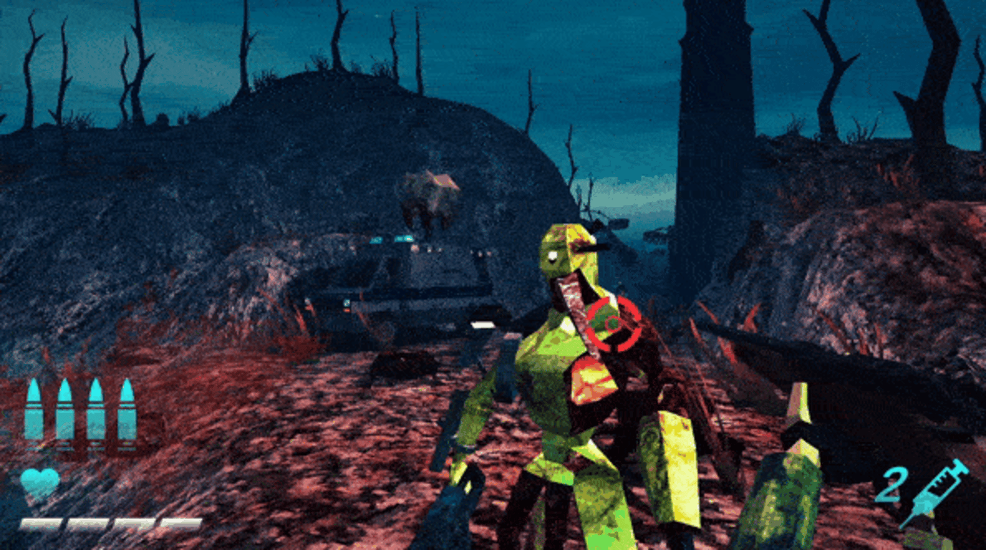 Disable your enemies by ripping off their limbs, or explode their heads and swim in the fountains of blood. You’ve got an infinite amount of ammo to fight and three doses of drugs in case your heart fails. Kill four enemies in a row without a single miss and you´ll be healed as a reward for your awesomeness. The only way to survive is to light the beacon, board the ship and leave the damn place. Good luck!