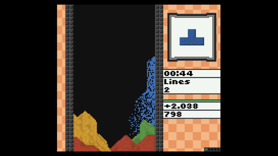 Blocks turn into sand. Clear pixels by lining up the same continous color from left to right.