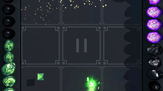 In Pongo17, players represent godesses Midori(Nature) and Kuroyuri(Chaos), and they must defend their core crystal from a bouncing ball representing the original information. As they move their paddles left and right, they not only defend their crystals but also modify the original information of the ball. Along the way, they can collect power-ups symbolizing the different forces at play in this eternal struggle. These power-ups have varying effects and can tip the balance in favor of one side or the other.