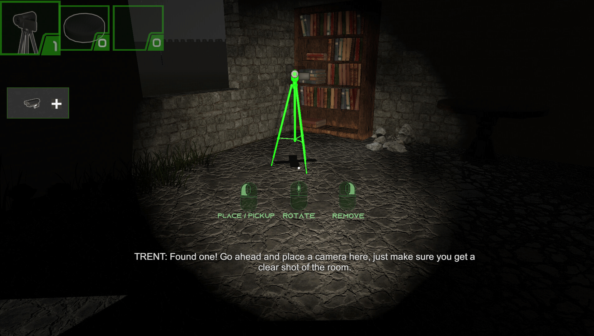 A dynamic survival-horror game featuring gadget setup and point-and-click sequences. Investigate the castle during the day and place cameras, sensors, and snares throughout the explored environment. Locate paranormal hotspots and read clues about countering enemies.