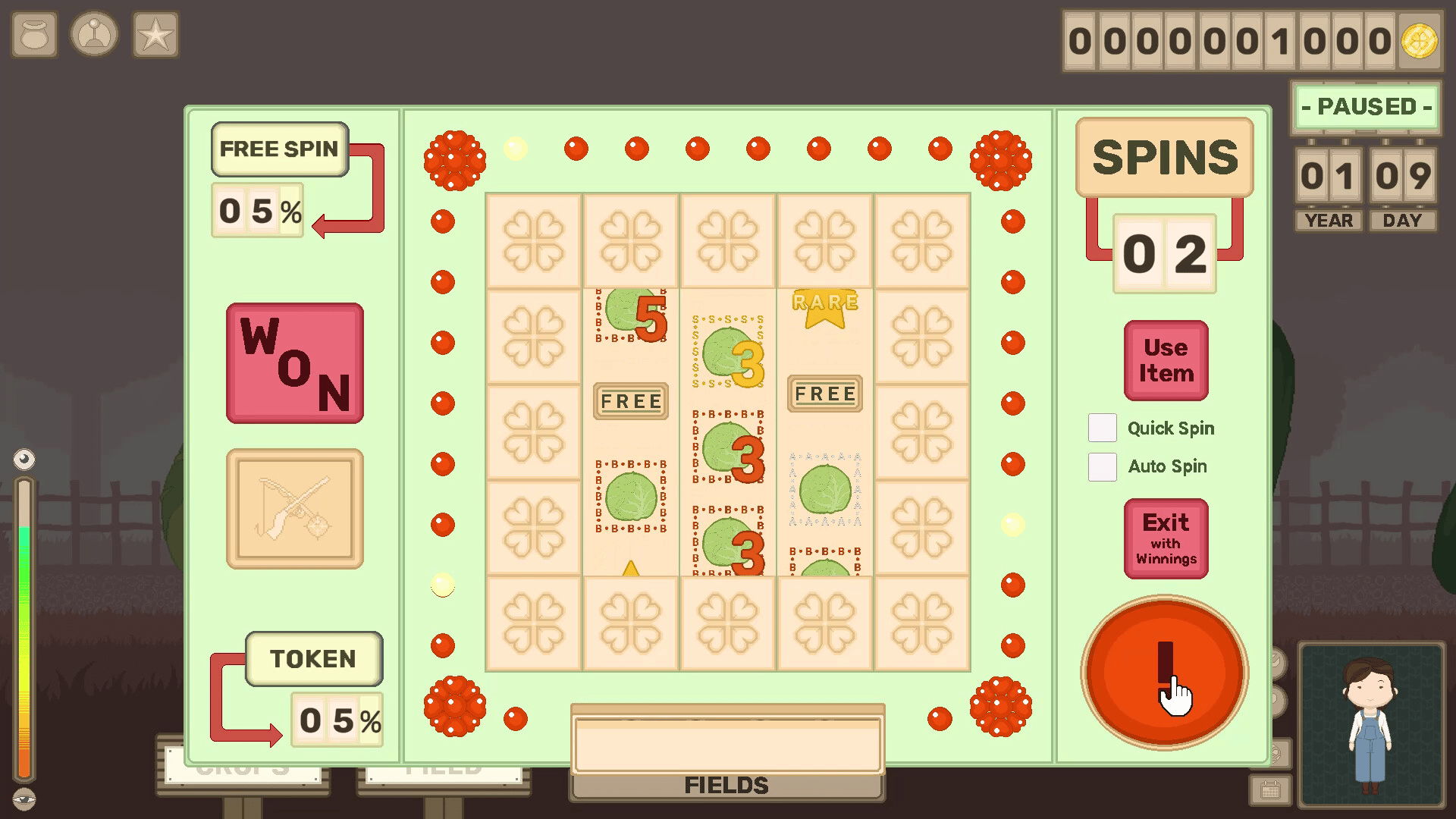 Reel Life is a slot machine-centric farming sim where luck, rather than scale, helps to determine your fiscal success. Farming, fishing, mining and more – collect goods to sell from slot machines scattered throughout the world. Leave it all to fate or game the system to make your dreams come true!
