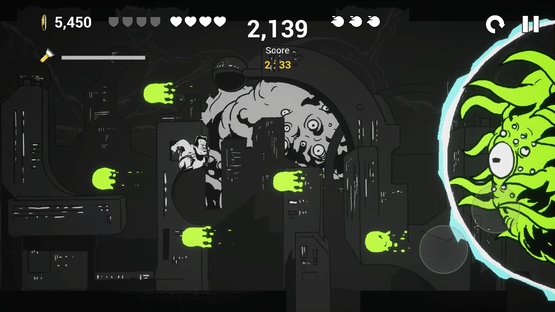 An old-school action platformer with rogue-lite elements. Imagine your grumpy neighbor blowing up the backside of an alien world with a blaster instead of resting after his shift. Blood, noir, and green slime.