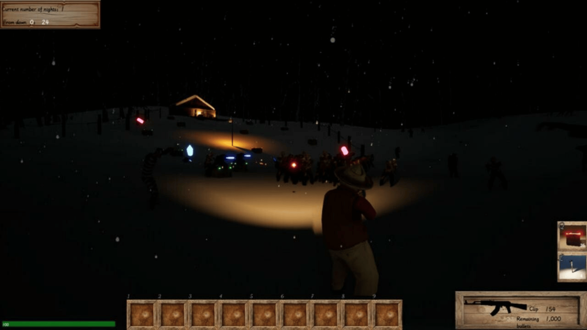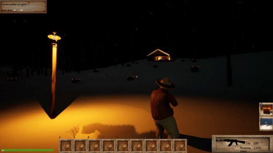 This is a third person tower defense game where you need to use the space wisely to place defenses to kill zombies at night.