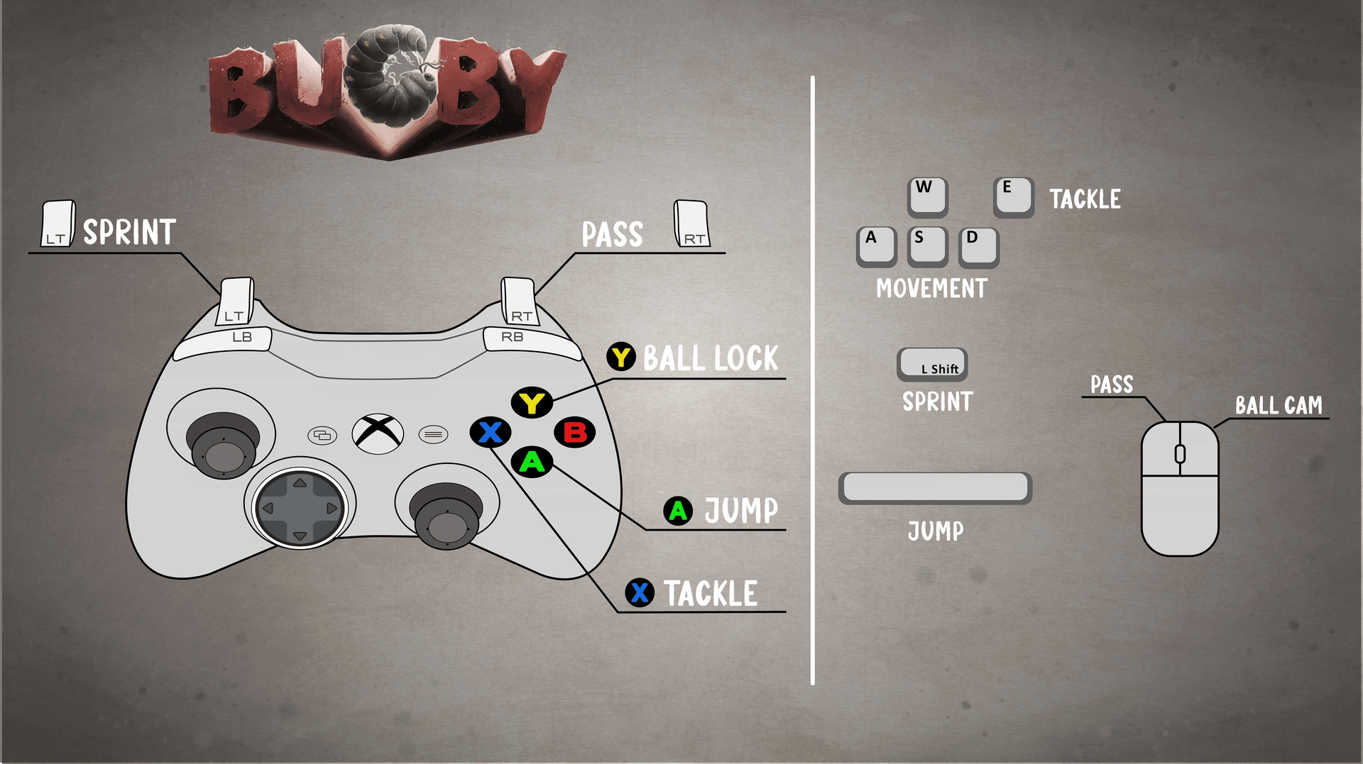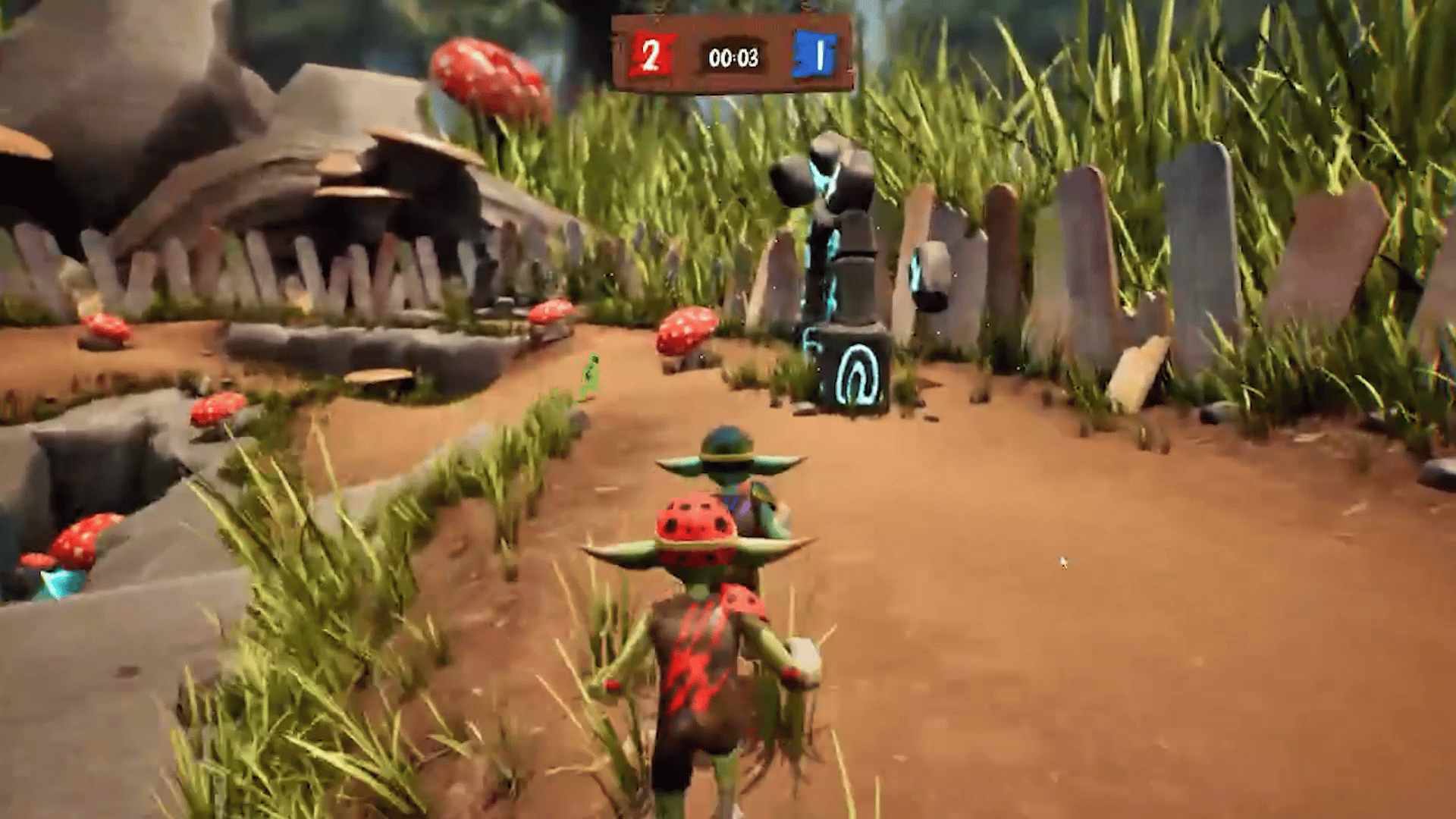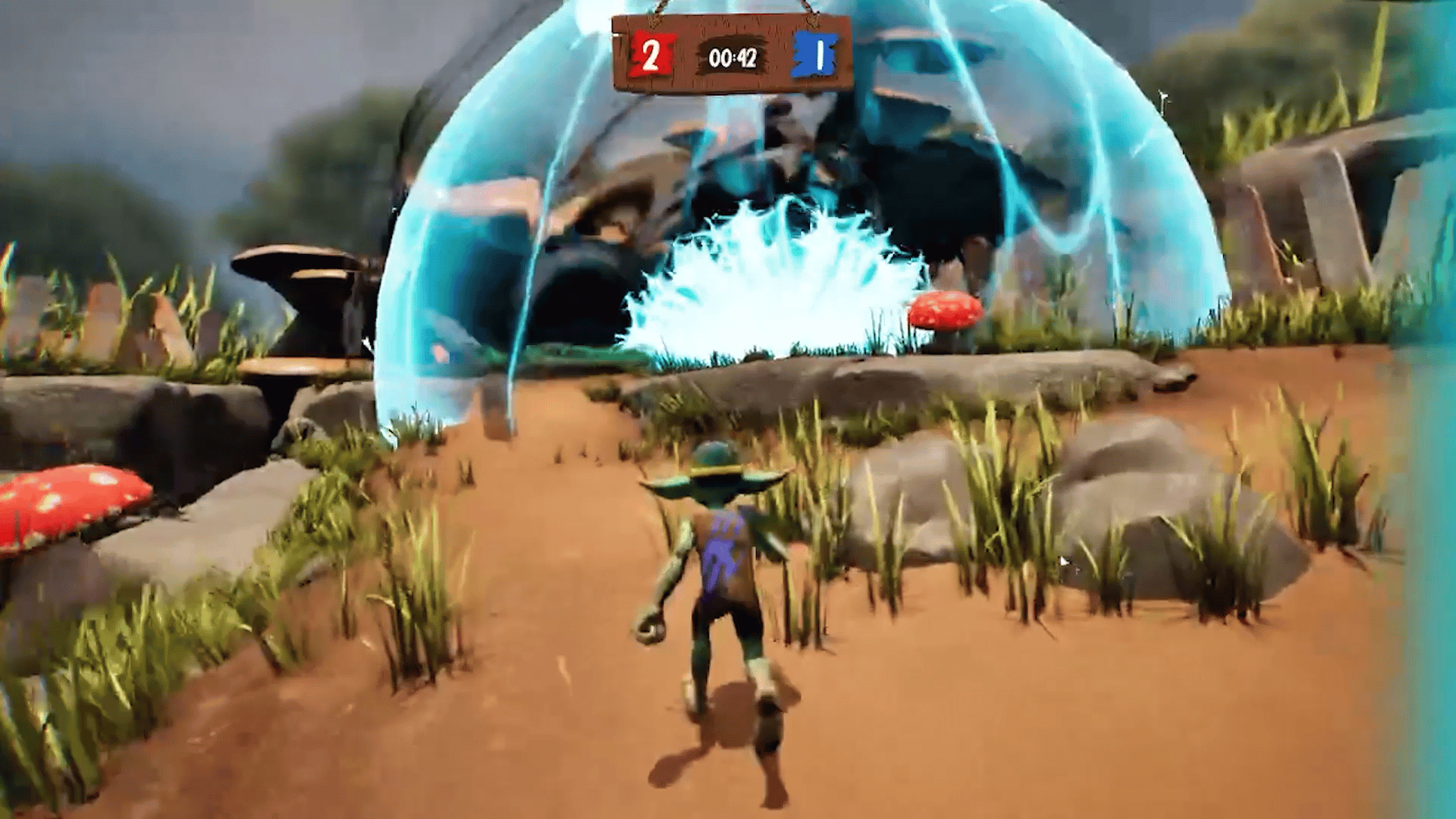 Bugby is a 3v3 team sport set in a magical forest. Each team tries to score the most points by carrying the Bugby ball into one of the many goals scattered about. Use the bouncy mushrooms, pits and platforms to traverse across the playground-like arena.
