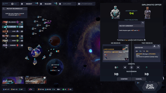 Stellaris Nexus is a turn-based multiplayer 4X game that respects your time, giving you the full spectrum of a thrilling, strategic 4X experience. Play as unique factions and leaders against up to 5 other players, plotting and battling your way to galactic dominance; all of it in about an hour.