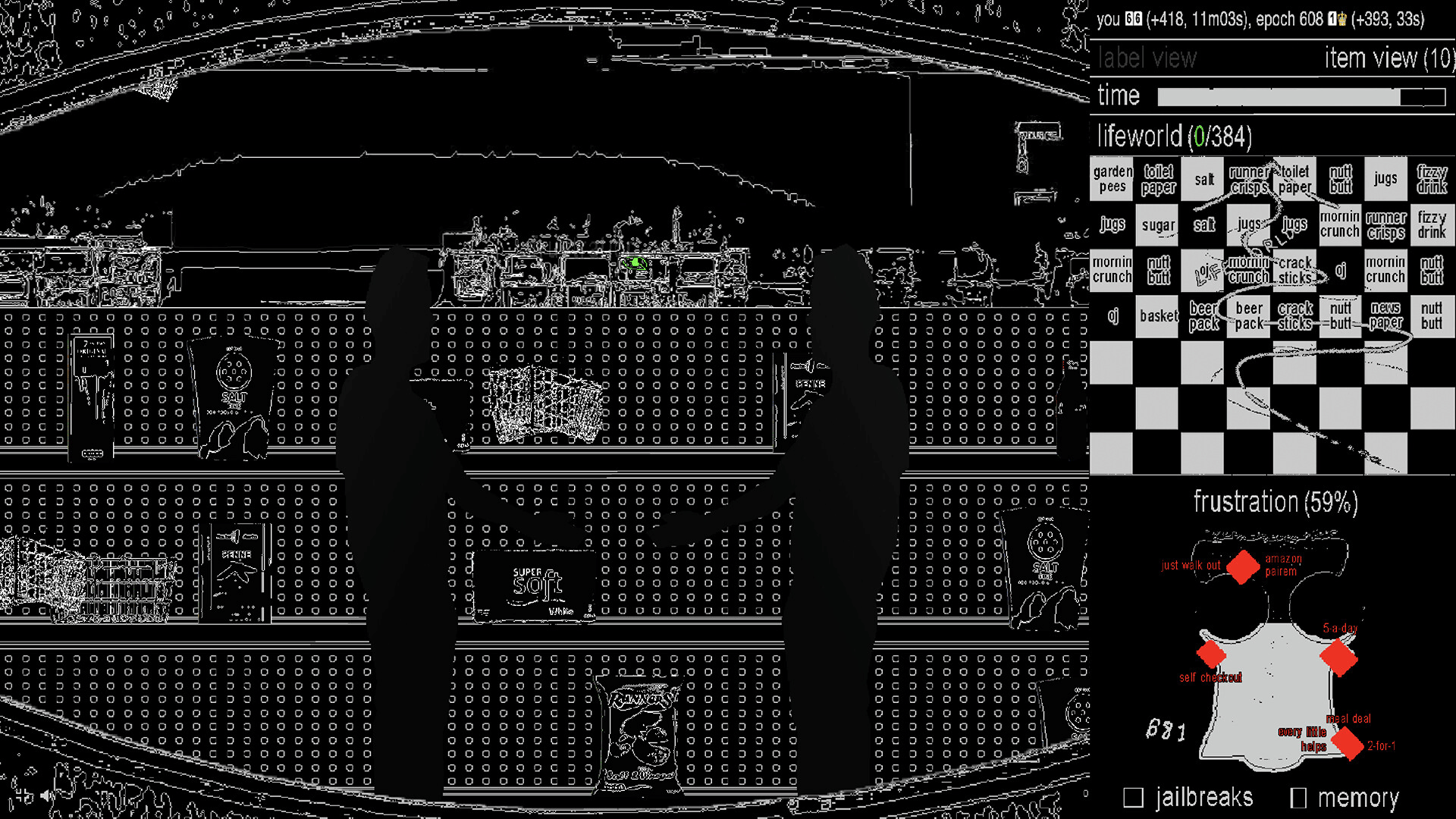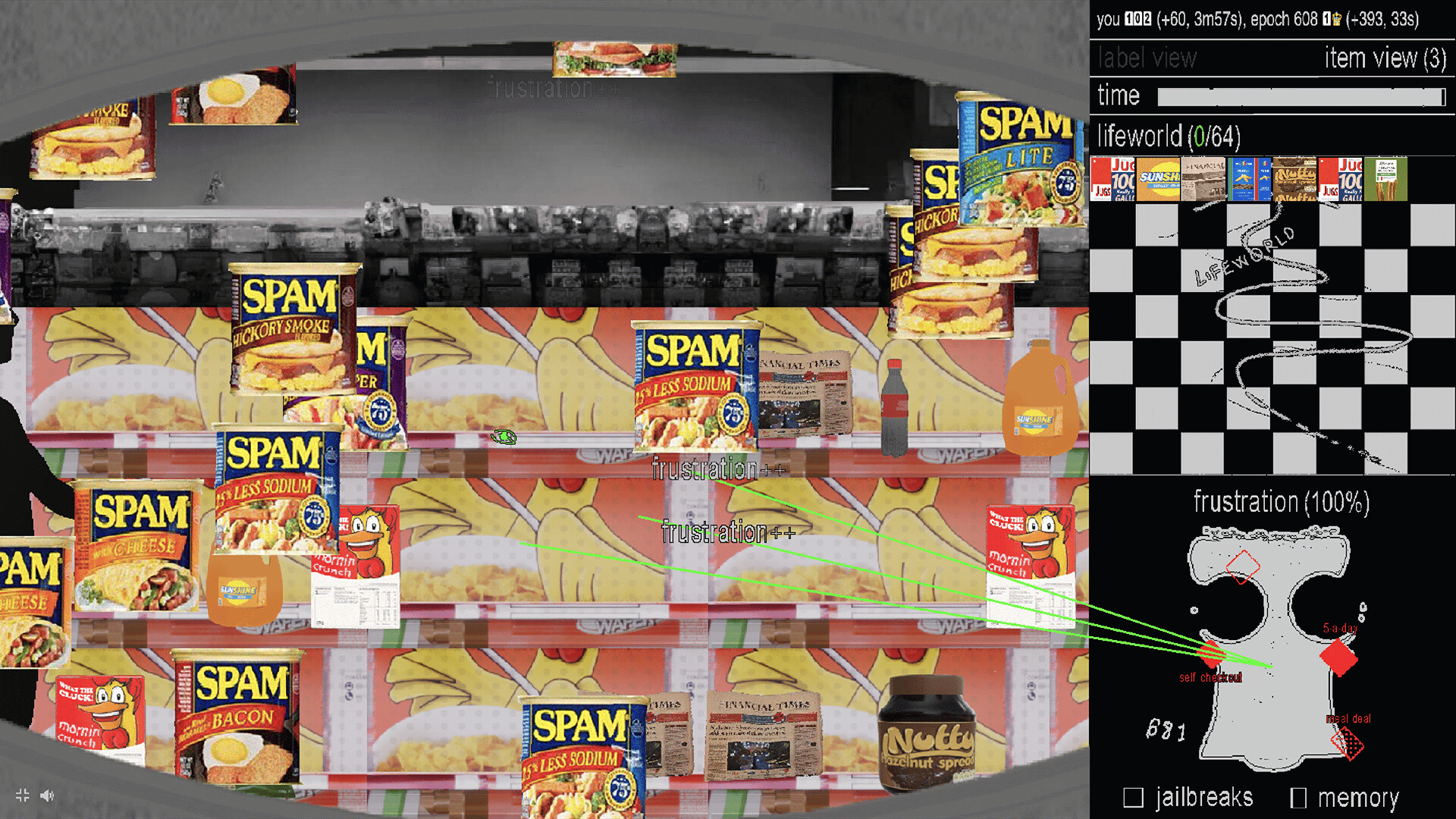 A multiplayer AI training clicker game set in an infinite supermarket, where time is running out and the AI frustrated. Release the frustration, jailbreak the AI