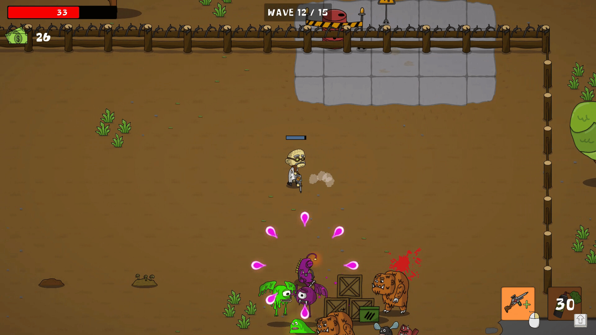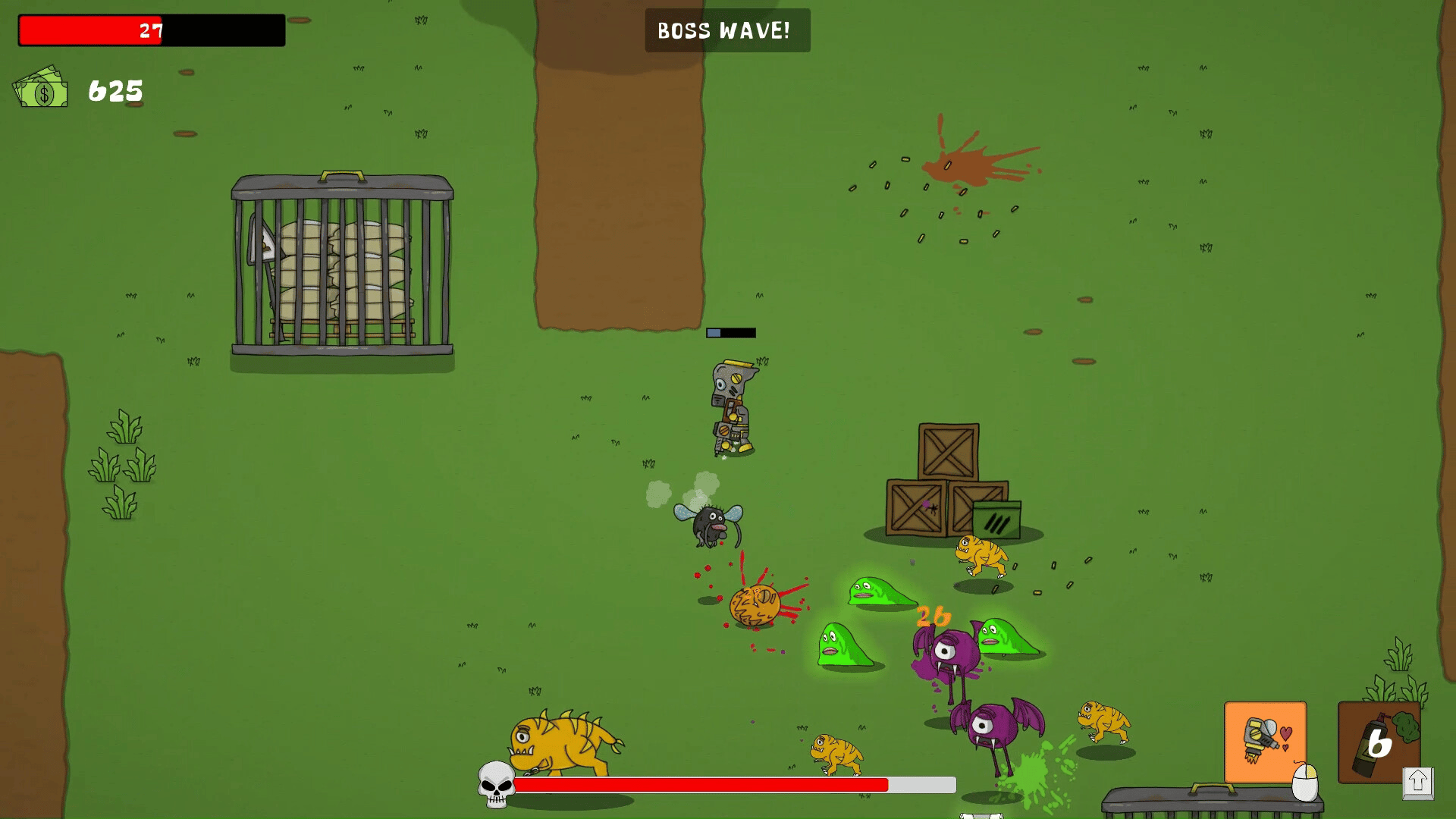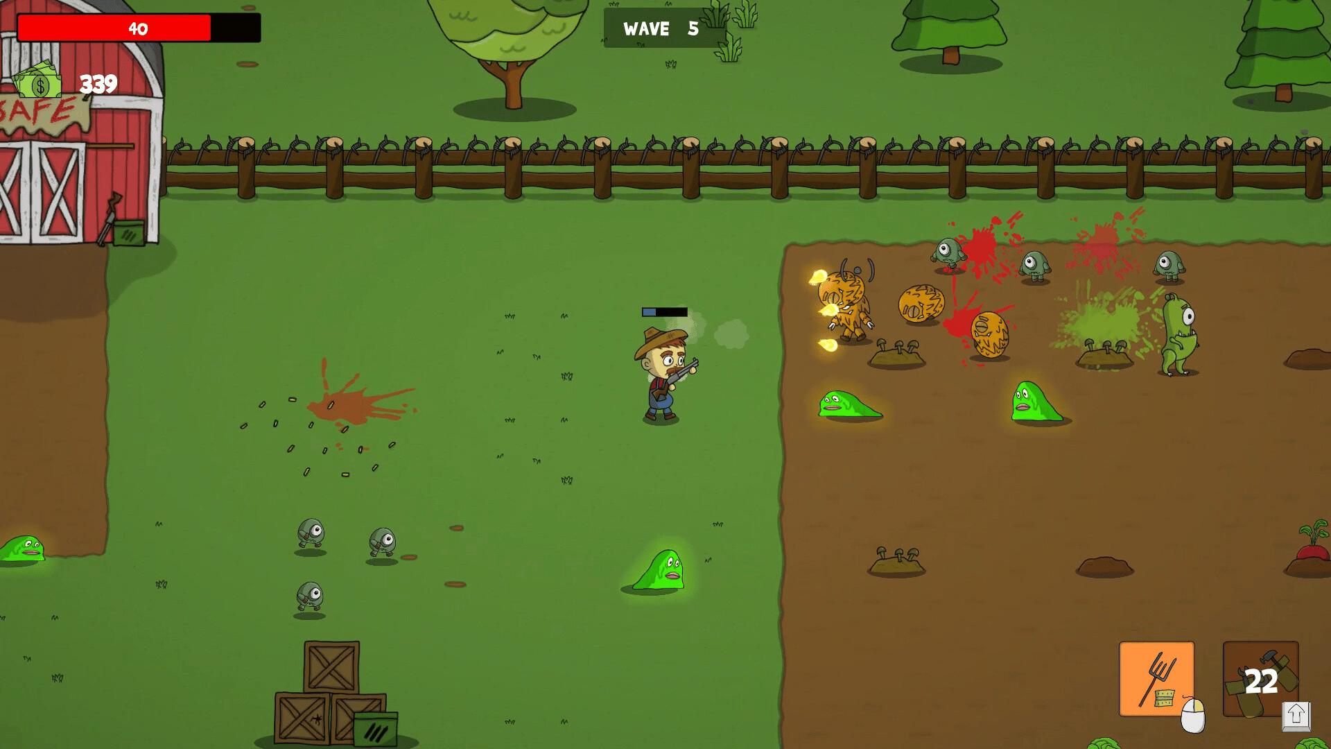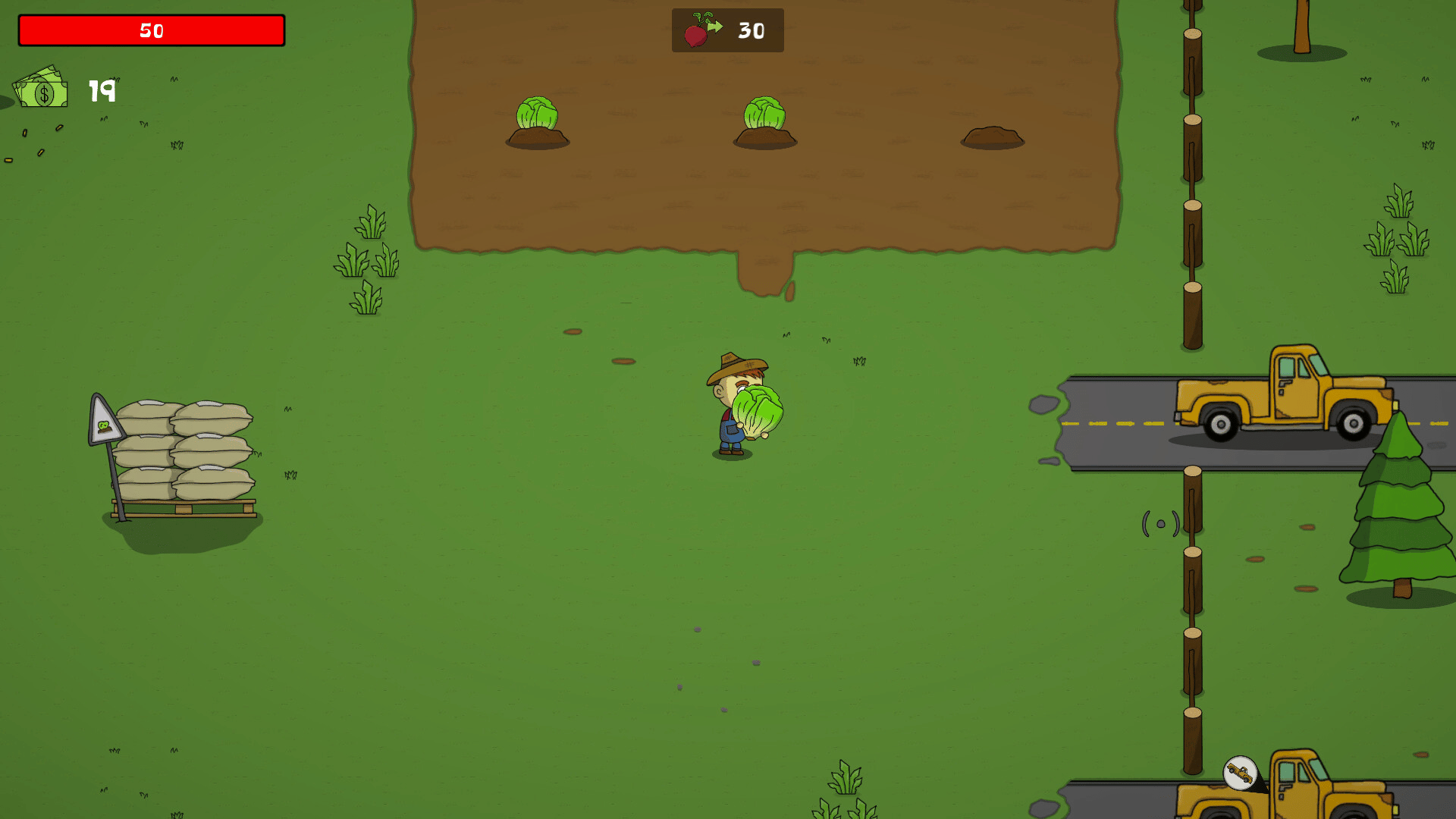 The Last Veggies is a 2d top-down shooter roguelite where you play as a farmer or his friends fighting hordes of monsters while trying to save humanity by delivering fresh veggies. Play different maps with different characters and an always changing set of Items and Upgrades.