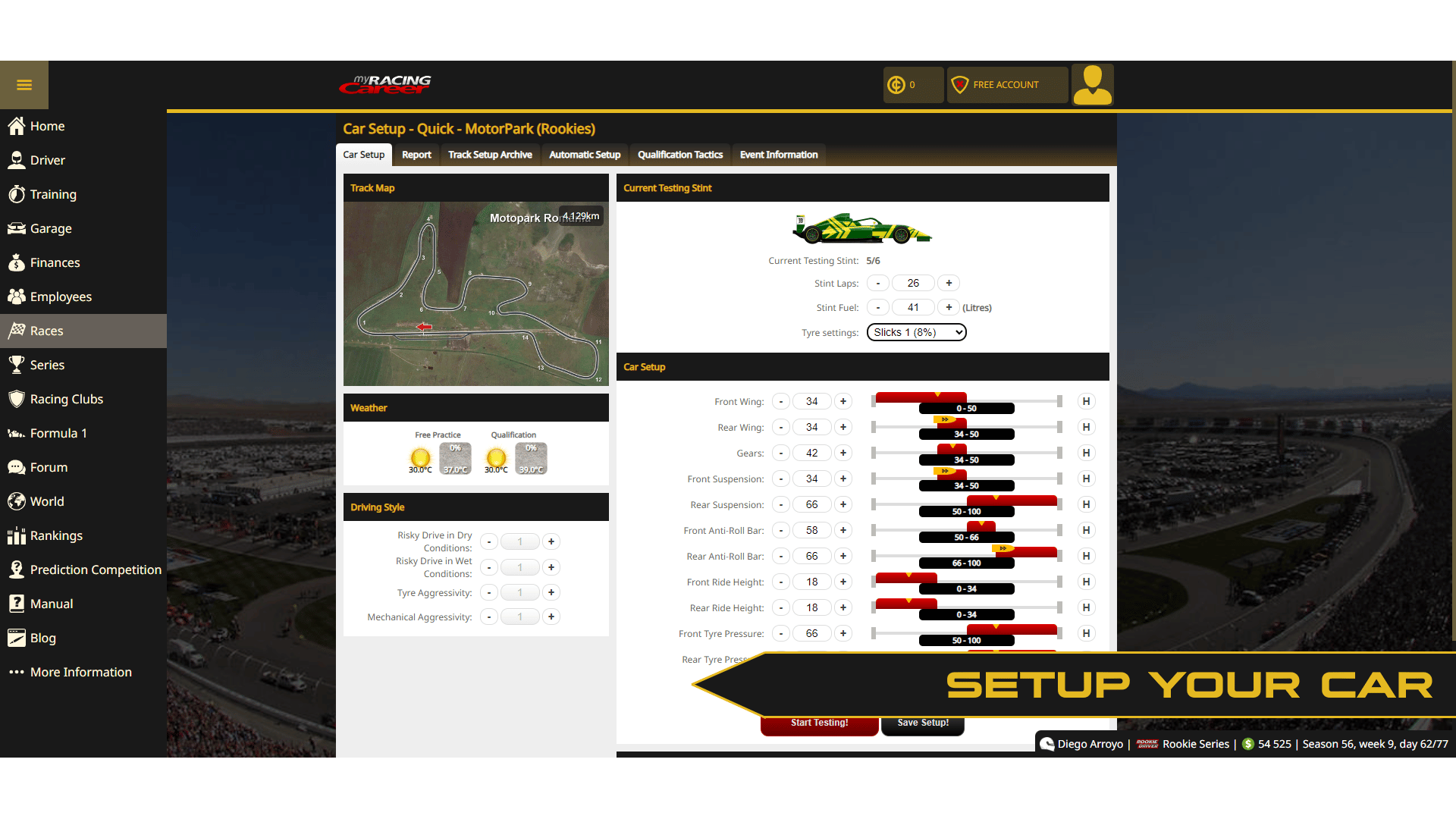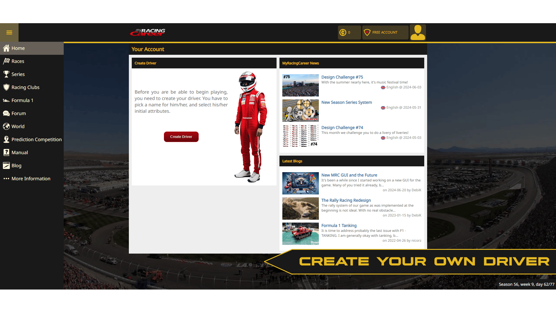 Start your engines and make your career as a world-class racing driver in one of the most established motorsport management games. Launched in 2012, My Racing Career has grown into a deep, competitive racing sim with a passionate community. From open-wheel racing to stock cars, motorbikes to rally — your path is yours to create. Begin in Formula 4 and work your way up to the big leagues like Formula 1, IndyCar, or Formula E. Or take a different route through touring cars, GT, prototypes, MotoGP, superbikes, or rally series. You control your future. Develop your driver and race strategy in a world where your decisions matter.