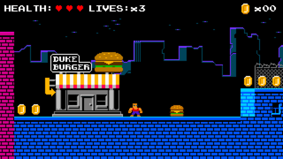 After saving mankind, Duke Nukem retired. He opened a little restaurant, Duke Burger. And now he is an honest businessman.
