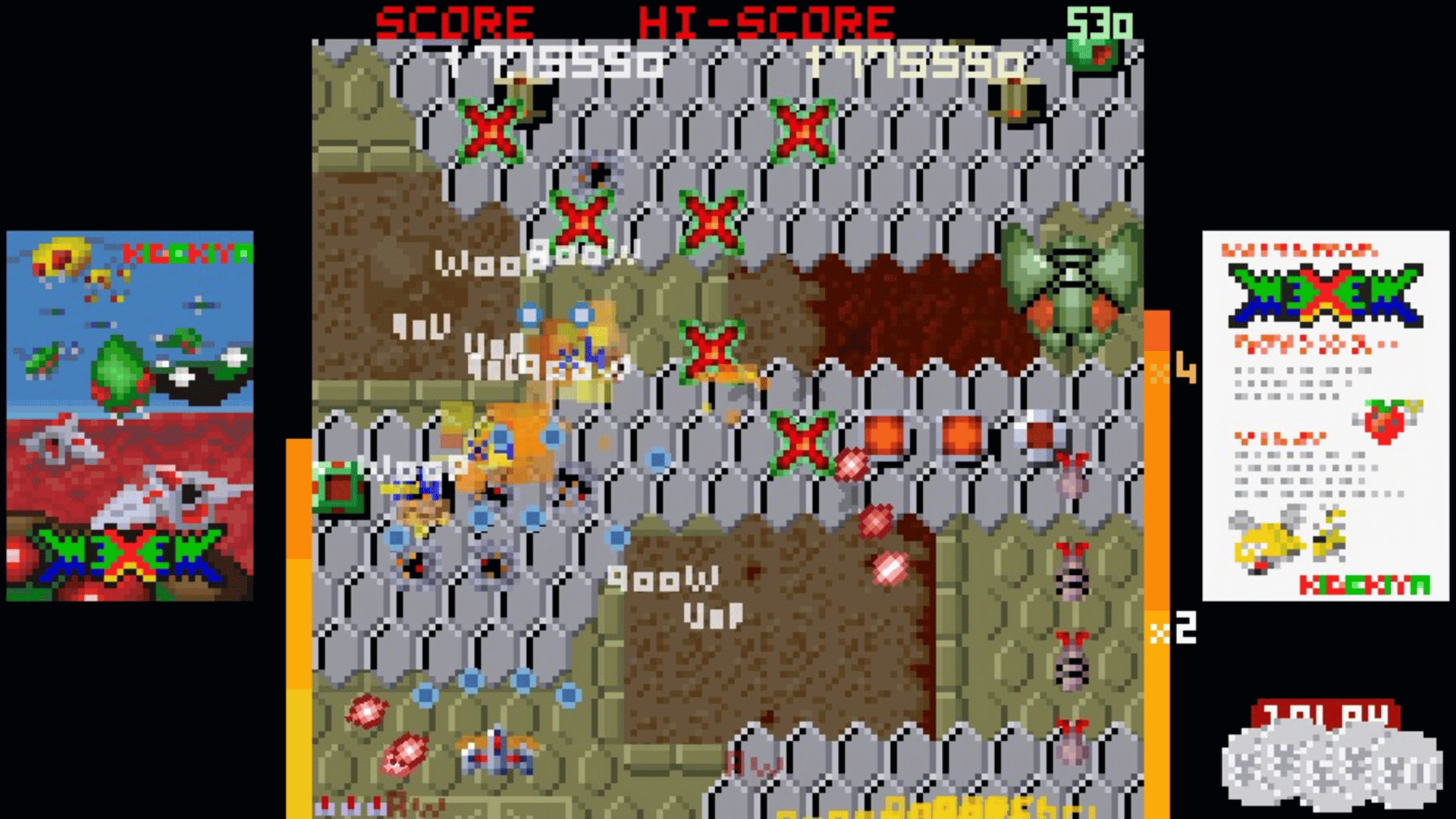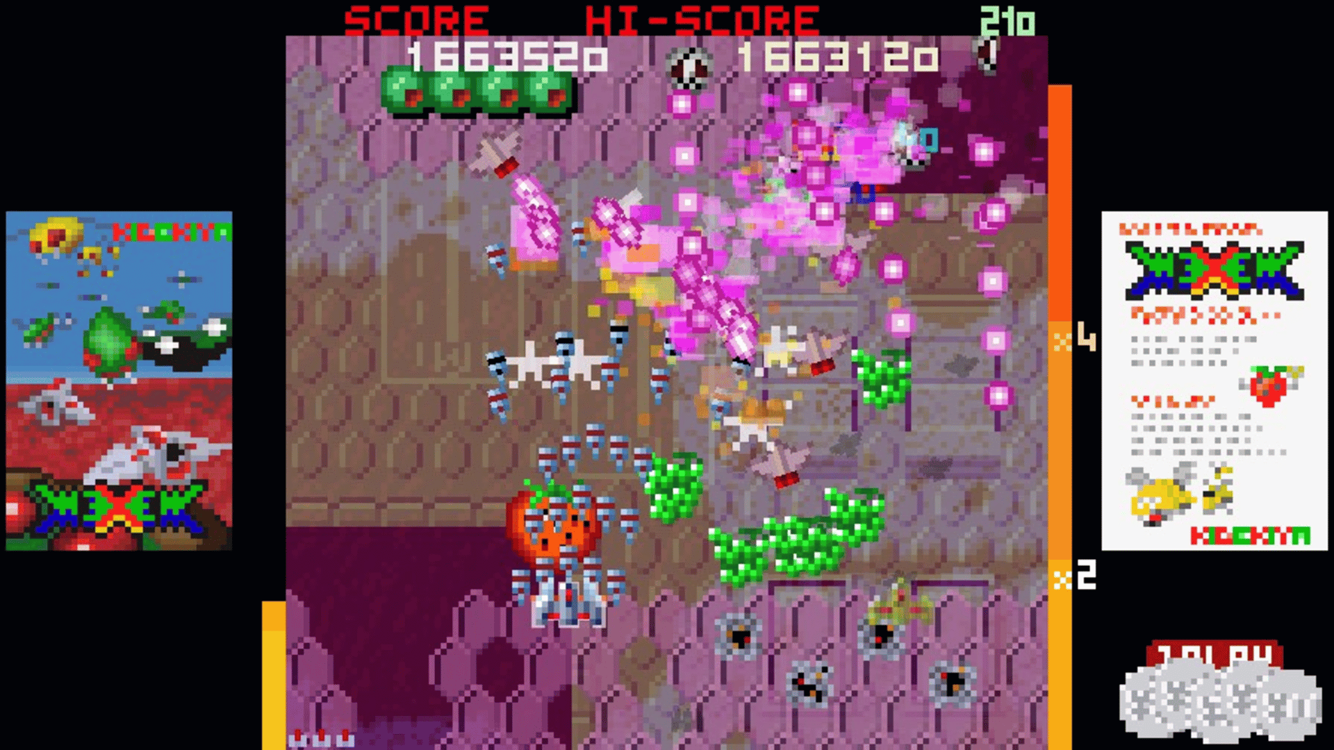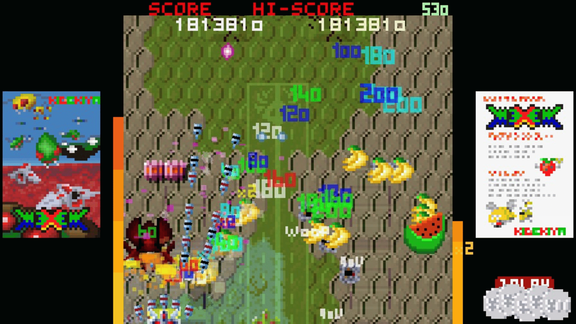 Wexew Mexem is a vertical scrolling shoot 'em up by Japanese developer Zakichi. It takes inspiration from games like Exed Exes and Xexex. By activating "High Point Mode" when your energy is at full power, you can also destroy enemy bullets, turning enemies into bonus items. If you press the mode activation button during "high point mode", you will return to normal mode at any time. Your attack has a range, and if you move up, the range will be longer, and if you move down, the range will be shorter, but the power will be doubled.