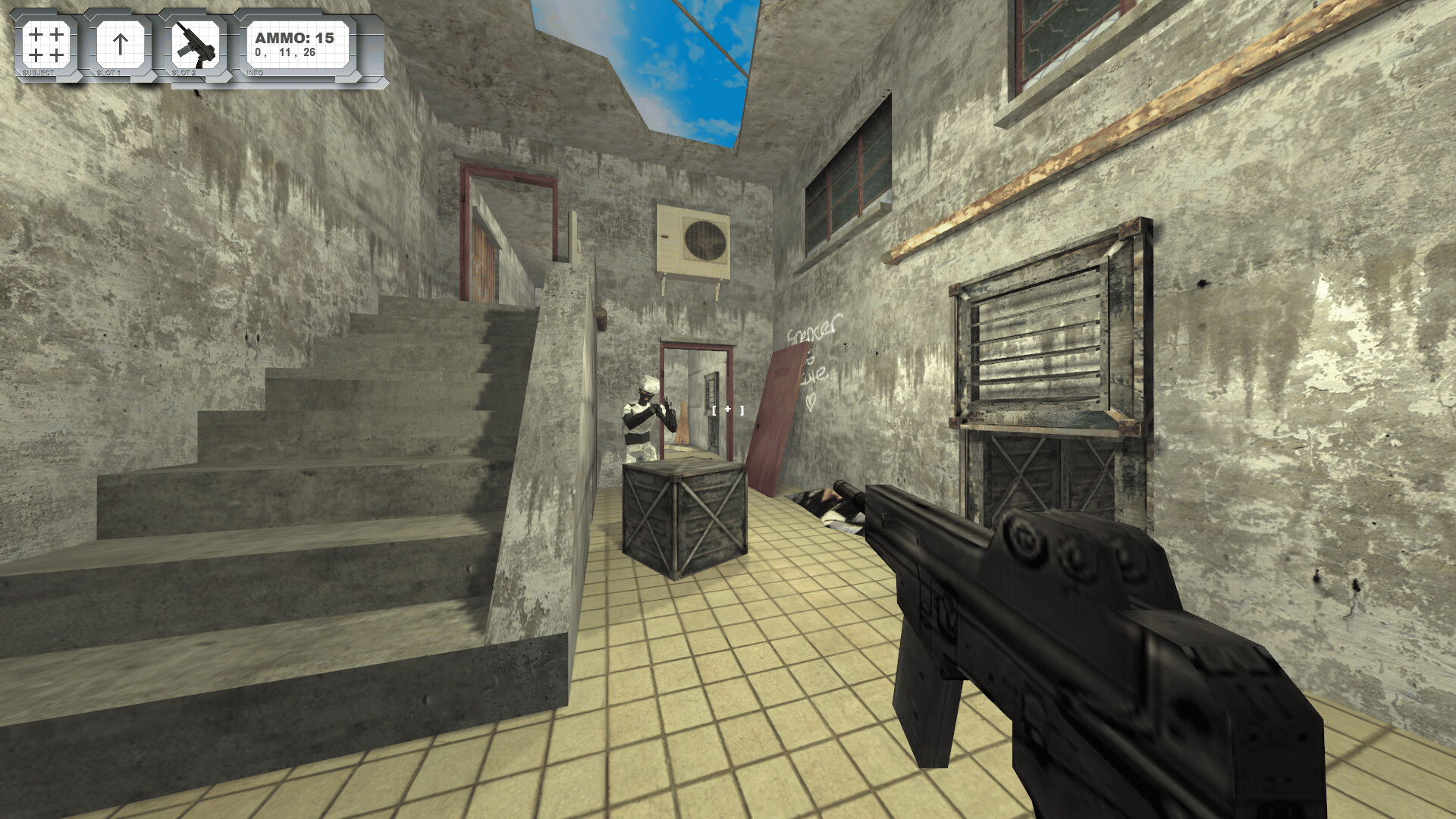 A corporate artificial intelligence simulator. Deviniva is a first-person retro shooter set in a dystopian nonsensical city. Play through five levels set in apartments and warehouses and fight different enemies.