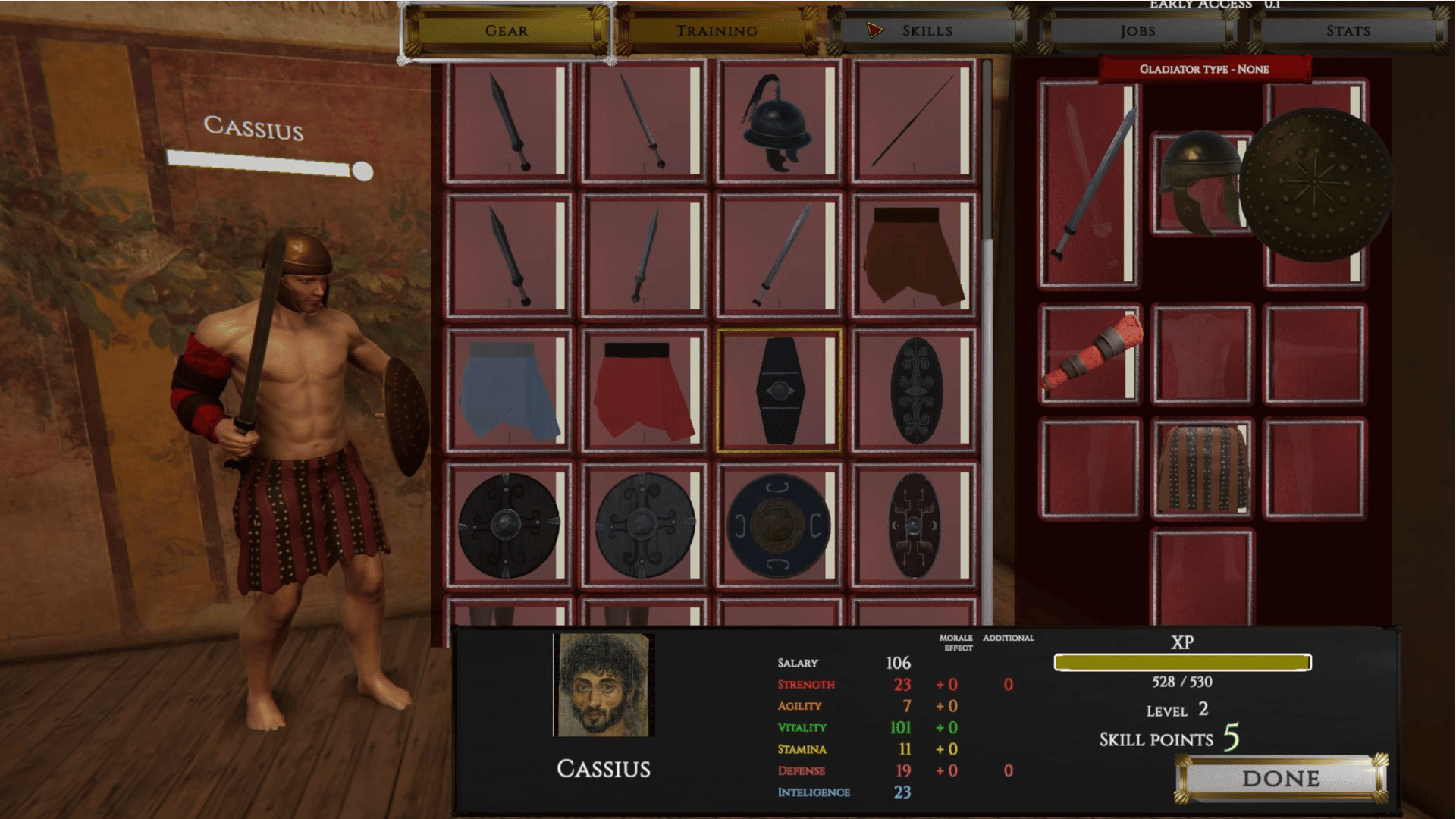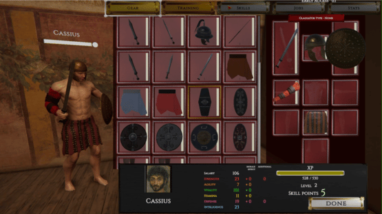 First-person simulator, Ludus manager based in ancient Rome. Manage your gladiators and make them fight for you. Take care of their needs, farm their food, heal them, train them. Fight yourself in the arena. Win tournaments and become the most famous Ludus.