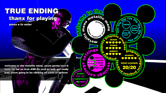Explore the cosmos as a metallic man who wants to find lots of cool looking crystals.