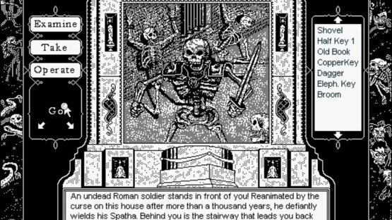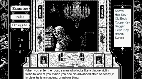 "Something sinister happens every night in a cursed mansion in Vienna. Some years have passed since the second plague epidemic, and you are the only descendant of the Malstrum's family who will dare enter the mansion, and discover what happened in that haunted place." Malstrum's Mansion is a free, browser-based adventure game inspired by Shadowgate and the other "MacVenture" games by ICOM Simulations. Developed by ACE Team, it was originally drawn and designed in 1989 for a Mac Plus, but it didn't see the light until April 2009, when it was created as a free flash game. The game also serves as a bit of viral marketing for the team's first commercial game, Zeno Clash.