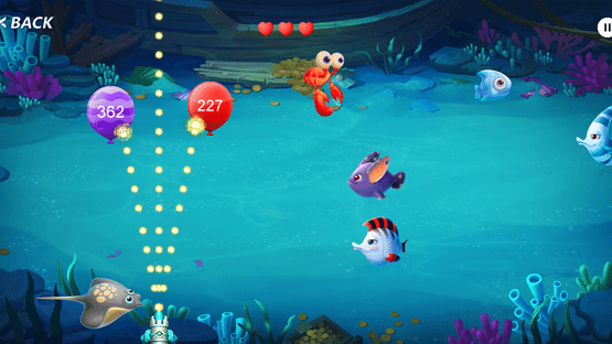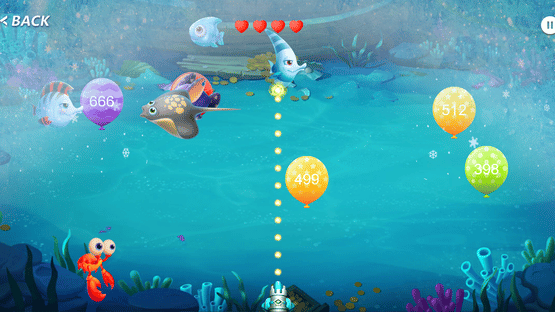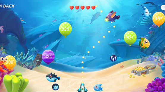 Players need to fire bullets from the turret below the screen to hit the balloon in the screen. Eliminate all balloons. In the middle of the screen, there will be fish swimming to resist bullets. If a player's bullet comes into contact with a fish, their health will decrease.