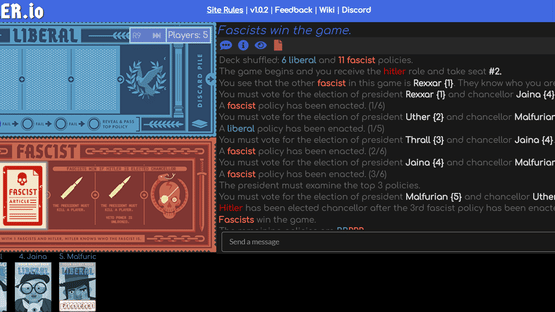 Play the hit board game in your browser! Secret Hitler is a dramatic game of political intrigue and betrayal set in 1930's Germany. Players are secretly divided into two teams - liberals and fascists. Known only to each other, the fascists coordinate to sow distrust and install their cold-blooded leader. The liberals must find and stop the Secret Hitler before it is too late.
