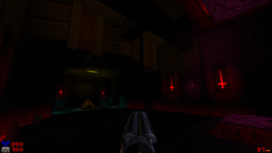 The premise is Lovecraft-inspired, but not part of any of Lovecraft's universes. The story takes place not long after Doom 2, where Hell was defeated by the Doomguy. What no one knew was that there was a far greater and nigh inconceivable evil lurking beyond our realm: the Elder Gods. They saw how Hell had failed and felt it was now their time to succeed. They knew of the Doomguy's strength, and so decided to attack him in the one place he's vulnerable: in his nightmares. Thus, SoTNR takes place within the dreams of the Doomguy, each one manipulated by the Elder Gods. The gameplay is pretty straightforward, with Doom-style exploration and combat. One difference is that your inventory is cleared and your health reset at the start of each map. After all, each one takes place in a separate dream :-P There are six total maps: three main levels, one secret level, one boss level, and a Quake-style start map.