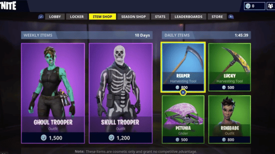 Season 1 was the first iteration of player progression in Battle Royale. Players could buy 4 Items in the Item Shop after earning enough XP. It started on October 26th 2017 and concluded on December 13th 2017.