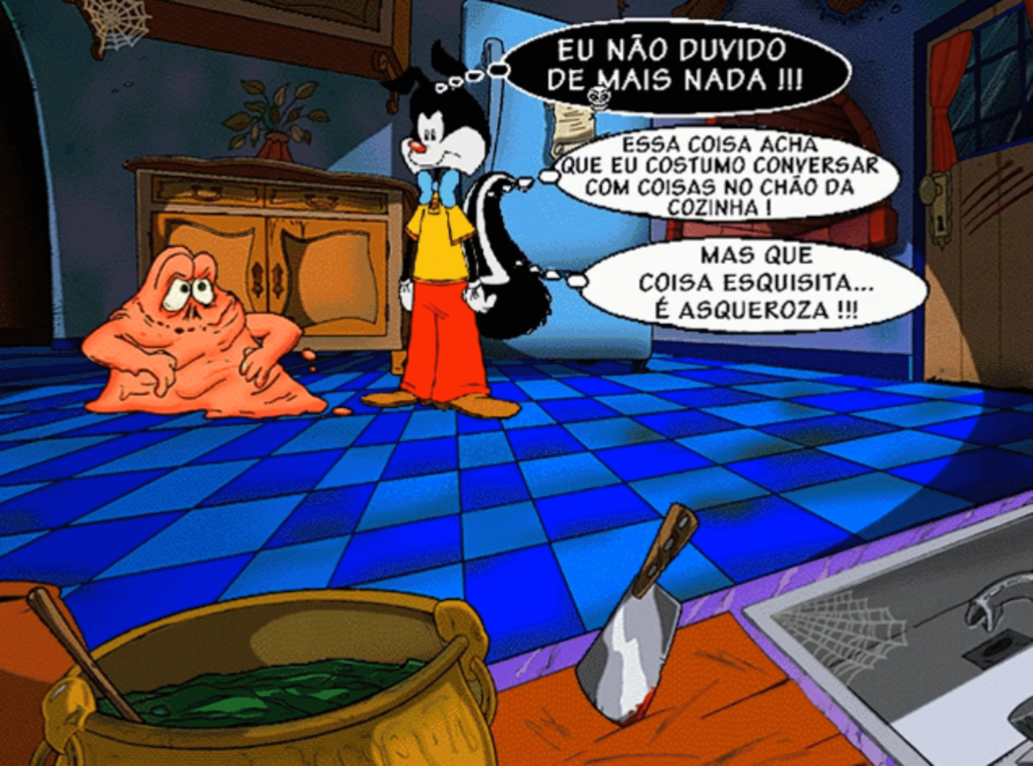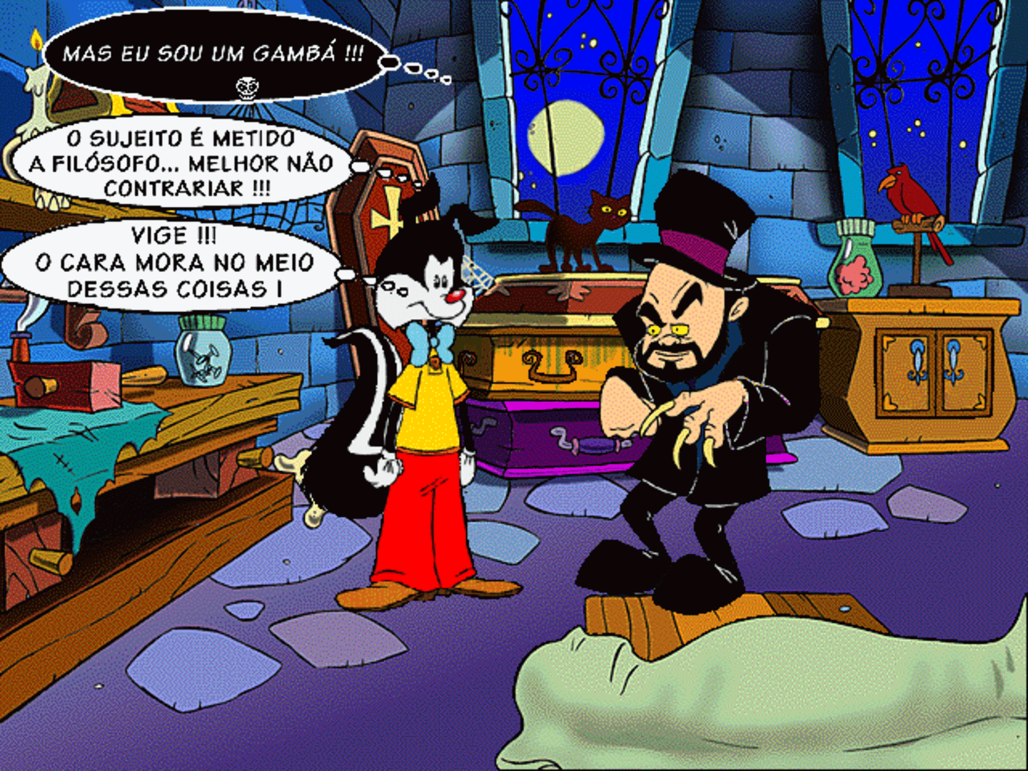 Caxy Gambá Encontra o Monstruário is a point-and-click adventure game that tells the story of Caxy Gambá, a marsupial who, during a stormy night, takes shelter in a mansion in the middle of nowhere. It was produced by 44 Bico Largo, idealized by Ale McHaddo, and had the special participation of José Mojica Marins, playing his trash horror film character Coffin Joe.