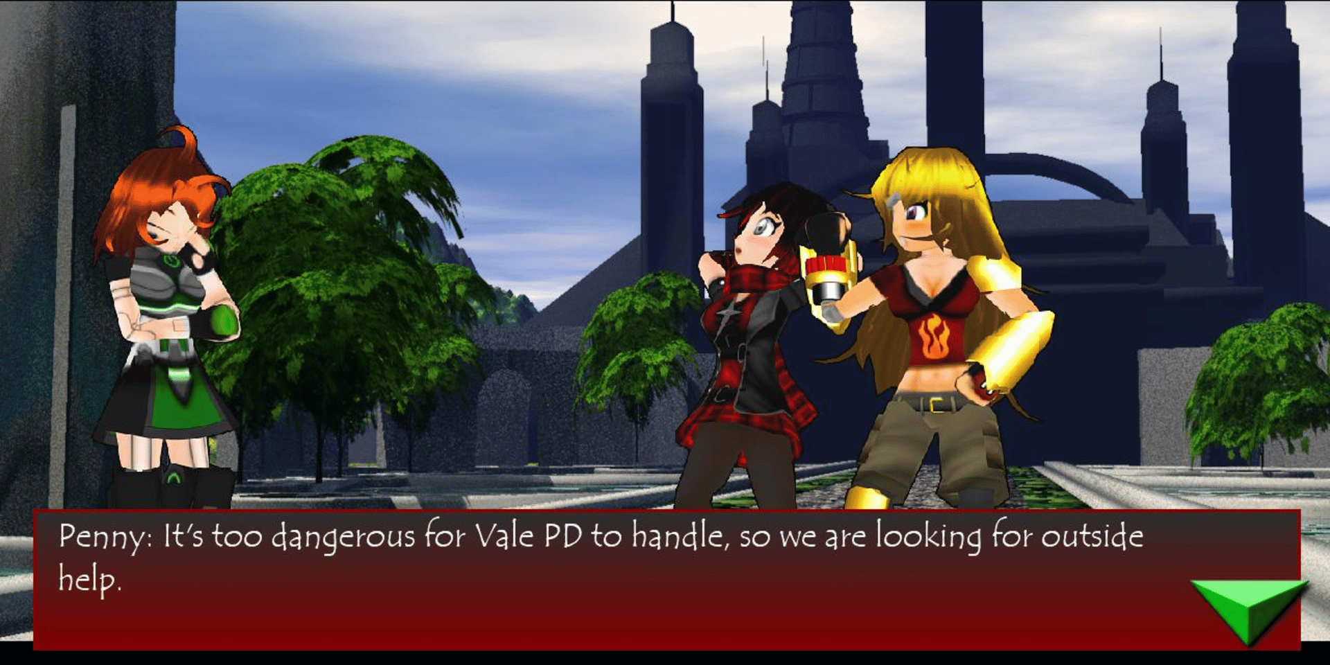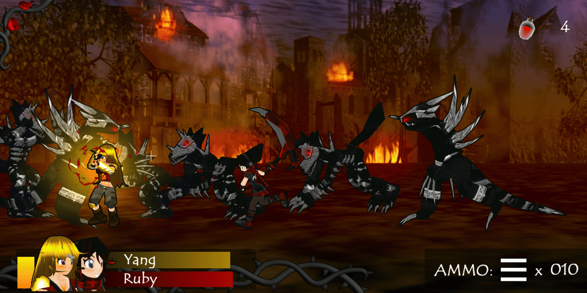 Ruby: Huntress of Vale is an alternate universe fan project centered around a 2D action beat-em-up game. This project is based on the web series RWBY originally by Monty Oum & Rooster Teeth.