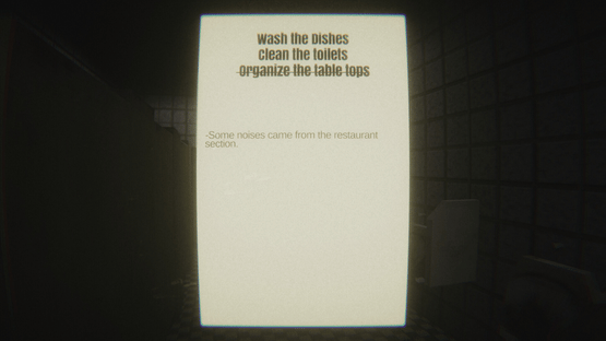 This is a first person atmospheric horror game. The style of the game is influenced by old graphics trend (PSX games etc). You play as a part timer in a restaurant. You wash dishes, take out trash, pump the toilets and organize the table tops.