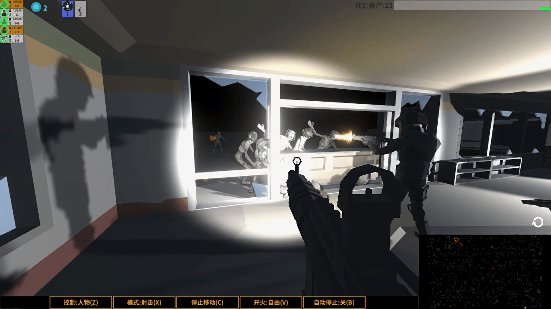 This is a low-polygon 3D game with top-down and first-person perspectives. Control any character, switch perspectives, collect items, and rescue teammates. Use AI or the formation system to operate characters. Face hordes of zombies and respond based on your choices.