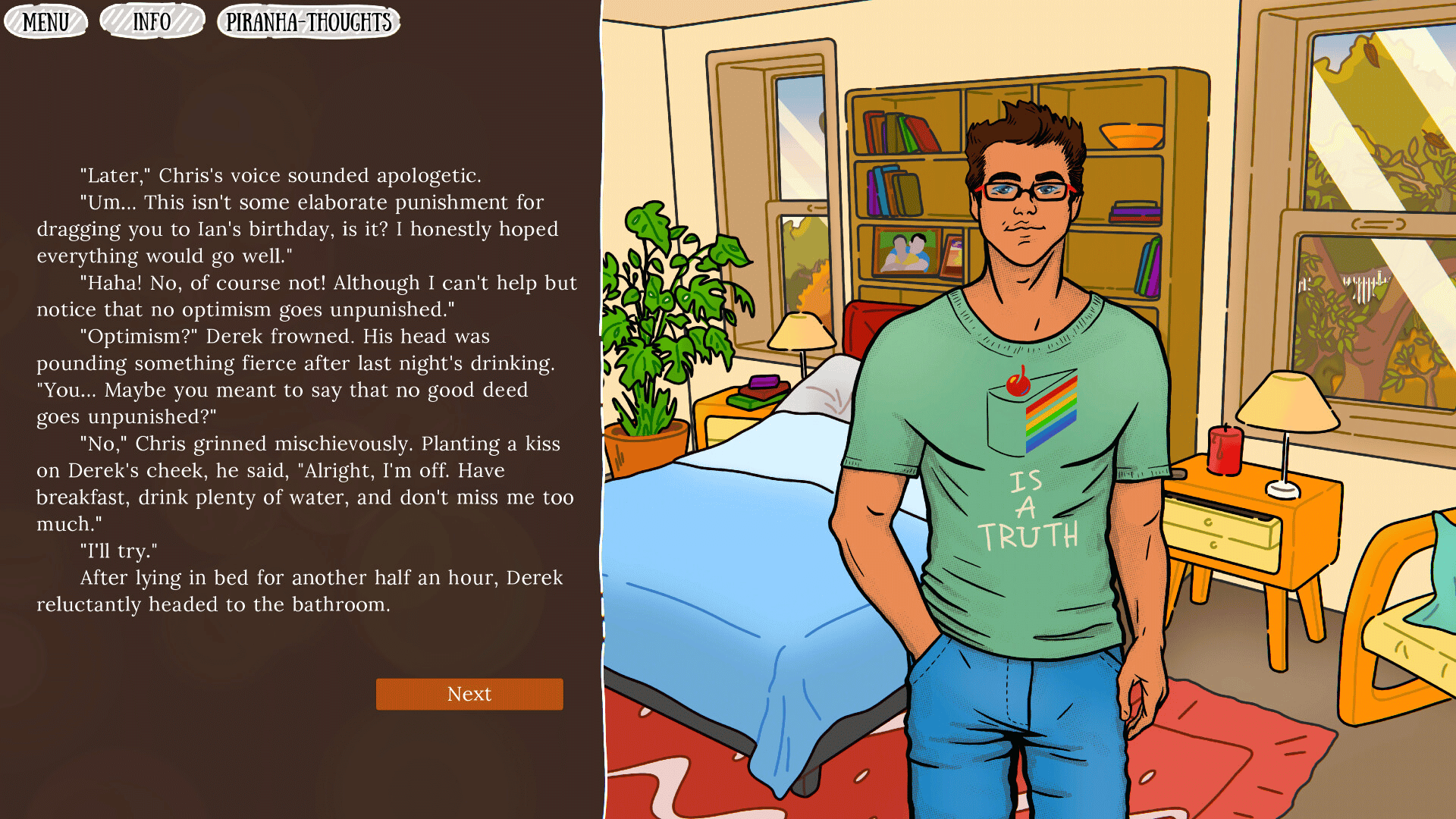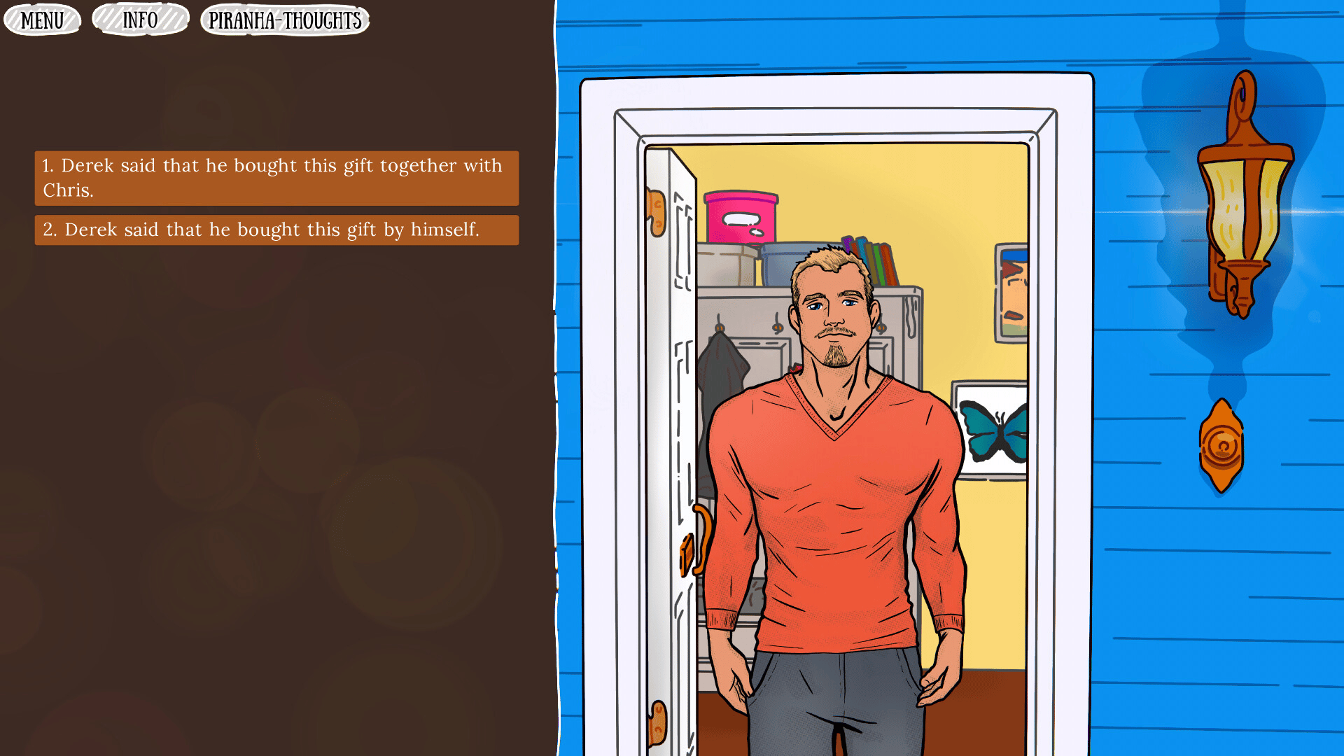 Take on the role of Derek — the police chief in a small town. Make decisions that will change the course of the story. Unravel the mystery behind the peculiar behavior of Derek's boyfriend, Chris, and his younger sister. The graphic style is inspired by bara-manga and colorful line art.