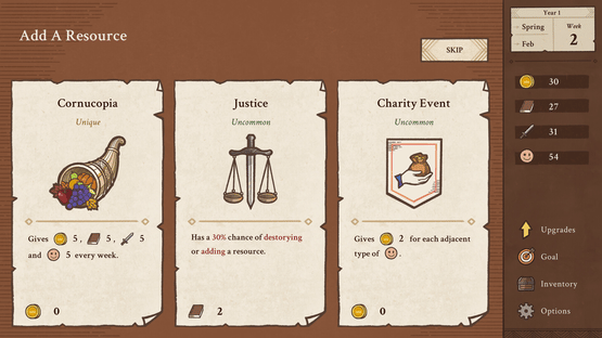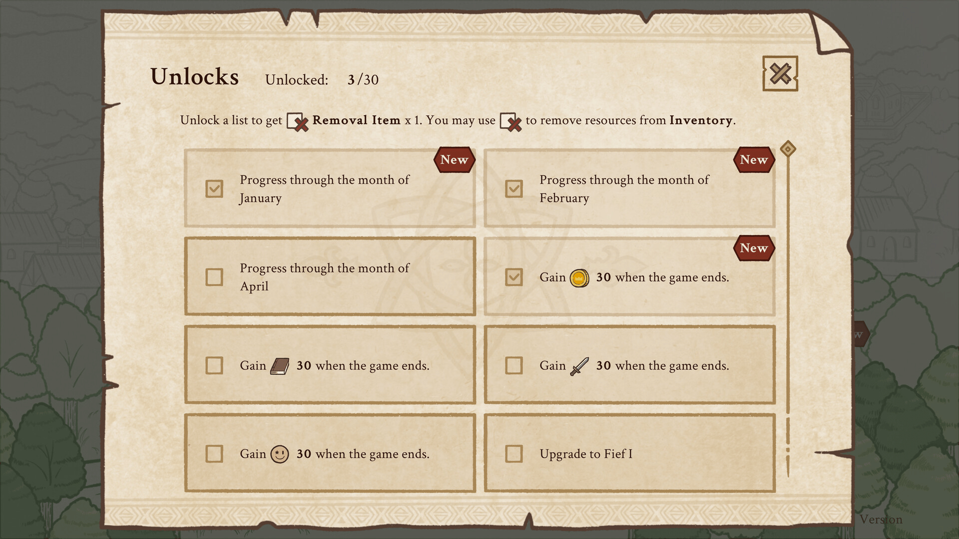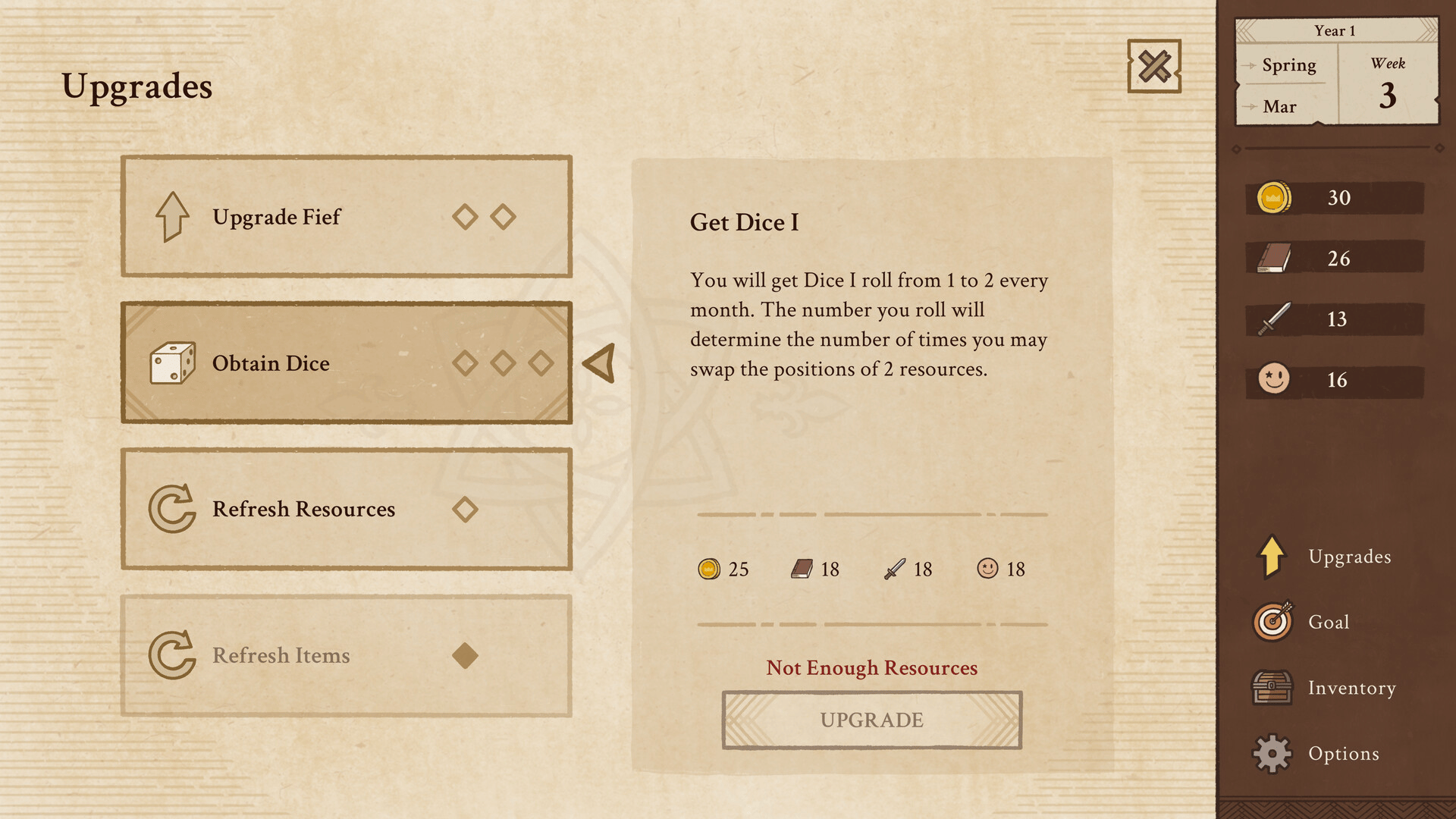 Good Luck My Lord is a deckbuilding game where, as a feudal lord, your goal is to collect various resources to contribute to the King. Collect resources each week and submit resources each quarter. Try using different items, upgrading your fief, or obtaining special items to earn more resources!