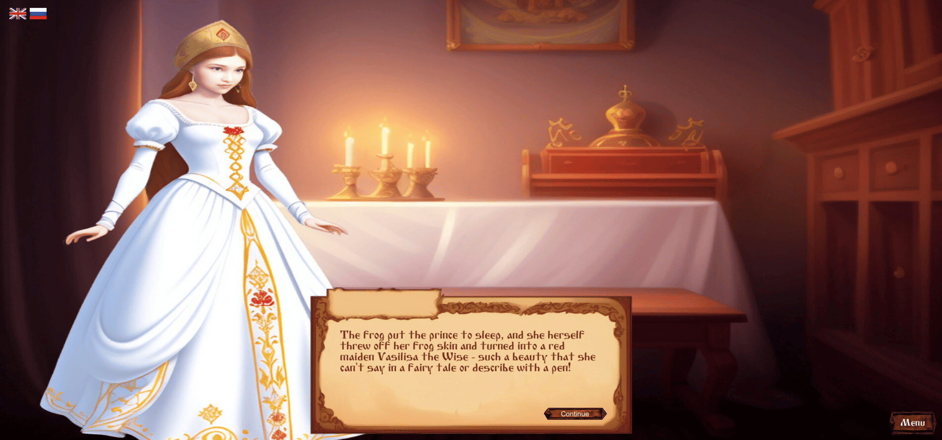 Vasilisa the Wise is a visual novel based on the famous Russian fairy tale "The Frog Princess". However, unlike the well-known fairy tale, in this game there are several scenarios, depending on the actions of the player. The goal of the game is to defeat the evil and win the heart of Vasilisa.