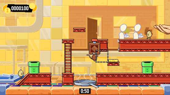 Sunny Side Down is a frantic arcade puzzle-platformer where you're a tiny mouse working at a breakfast diner, guiding eggs toward a frying pan while a line of angry customers looms over your head. How long can you last in this hectic work environment without getting fired?