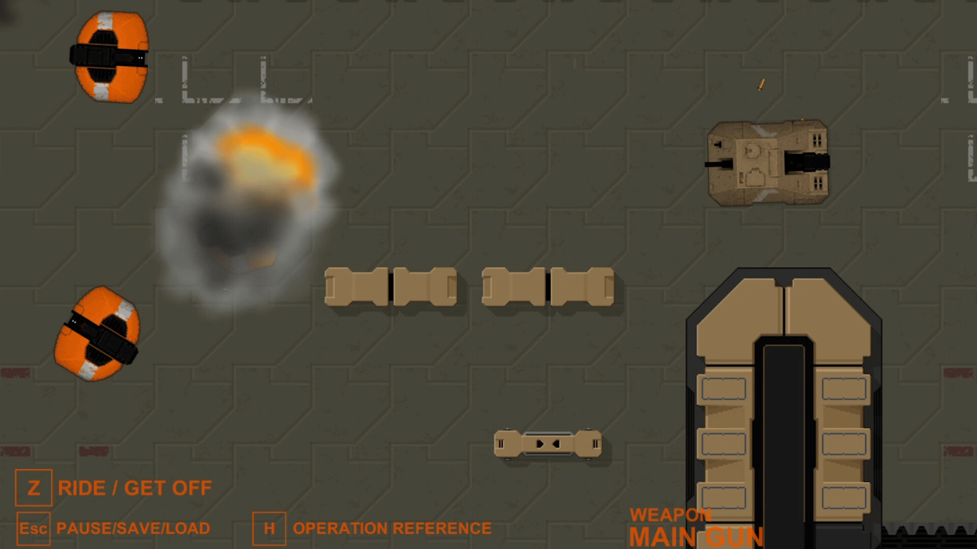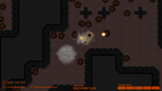 Drive a car, shoot the gun with operating a tank and sometimes walk. 2D top down combat vehicles shooter and adventure game