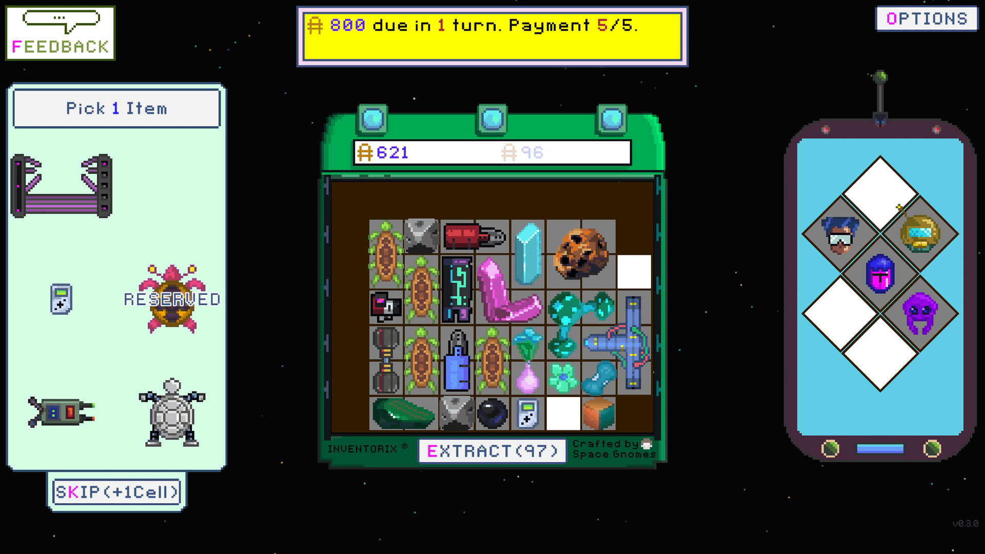 Inventorix, your trusty high-tech space asset inventory device, holds the key to extracting value from the vast resources scattered across the cosmos. But this marvel of technology comes at a price—quite literally. You secured it through a questionable loan scheme, and now you're on the hook to pay off your ever-increasing debt before the space loan sharks come knocking.