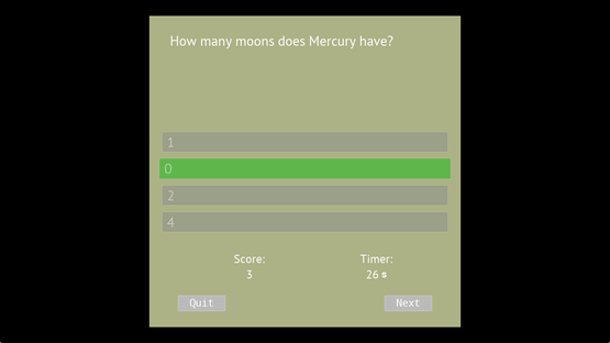 An educational, family-friendly game about our very own Solar System. Fly through space, land on planets and learn all the essential information about planets. You can take quizzes about each planet to check your knowledge.
