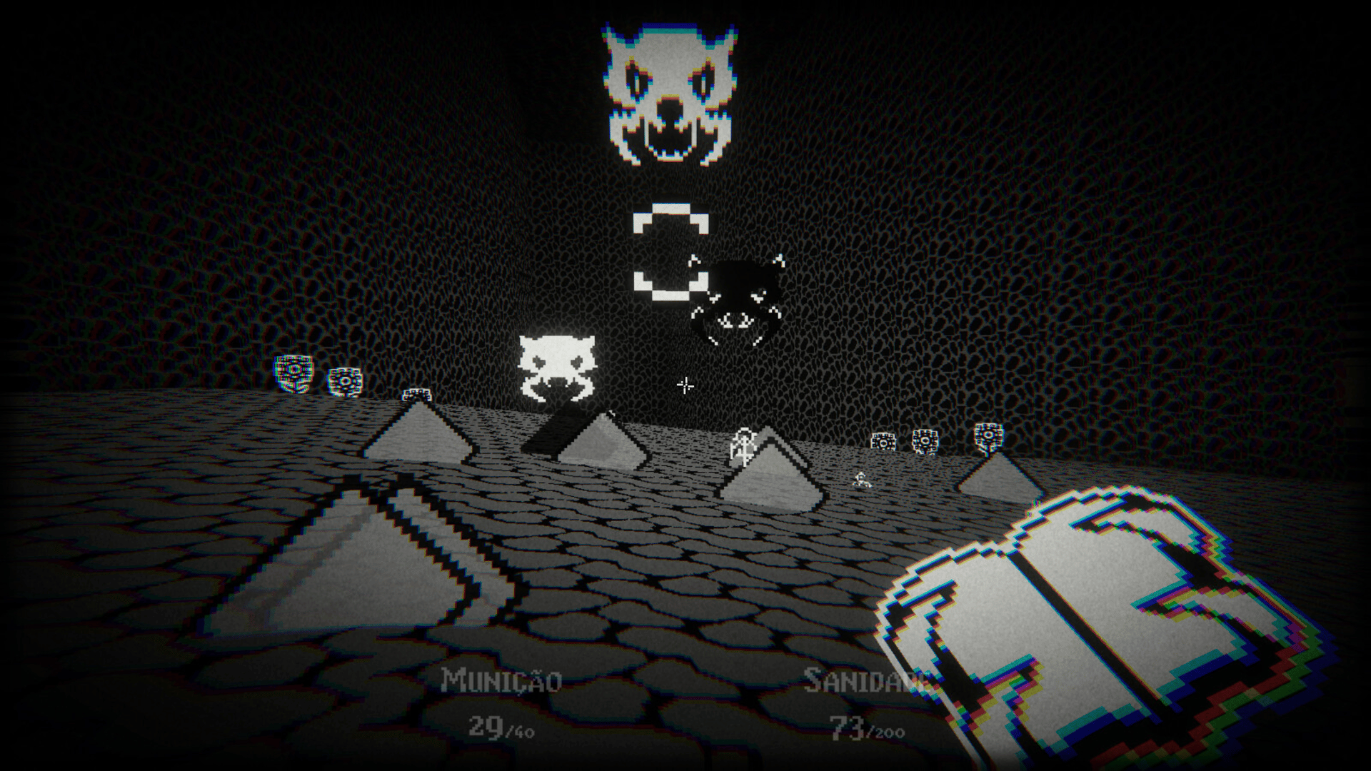A Boomer-Shooter with epileptic 1-bit pixel art. Immerse yourself in an enigmatic story destroying all enemies in front of you with a unique combat mechanic. Face depression head on, your enemies are just things created by your mind.