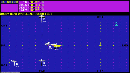 The player assumes the role of a controller in a Terminal Radar Approach Control, giving instructions to aircraft so that they can safely land, as well as take off and enter their correct flight corridors. The purpose of the game is to manage the flights that are presented to the player without the flights being delayed or exiting/landing in the wrong location. The aircraft either come flying in on the screen and have preset exit or landing points or show up as wanting to take off with an exit point. It is the player's job to determine the route each aircraft flies and when they may land or take off. The aircraft cannot be too close to each other, so the player needs to make sure that they are passing each other on different flight levels or with sufficient distance (three grid dots north/south or east/west) between them. When an aircraft is in danger of crashing or is exiting at the wrong location or altitude, the aircraft will inform the air traffic controller. Aircraft do not change course/altitude unless the player tells them to. Incoming aircraft not given clearance to land, however, will go into a holding pattern and wait until given clearance. When necessary, the player can also give holding instructions to aircraft, as long as their course takes them over a VOR tower which is used as the holding fix. To start with, there are few flights at the same time, but at higher GS levels, there are many flights that need management at the same time. Also storms which the aircraft can not pass through show up and some aircraft have very little fuel and have to land fast or they will crash.