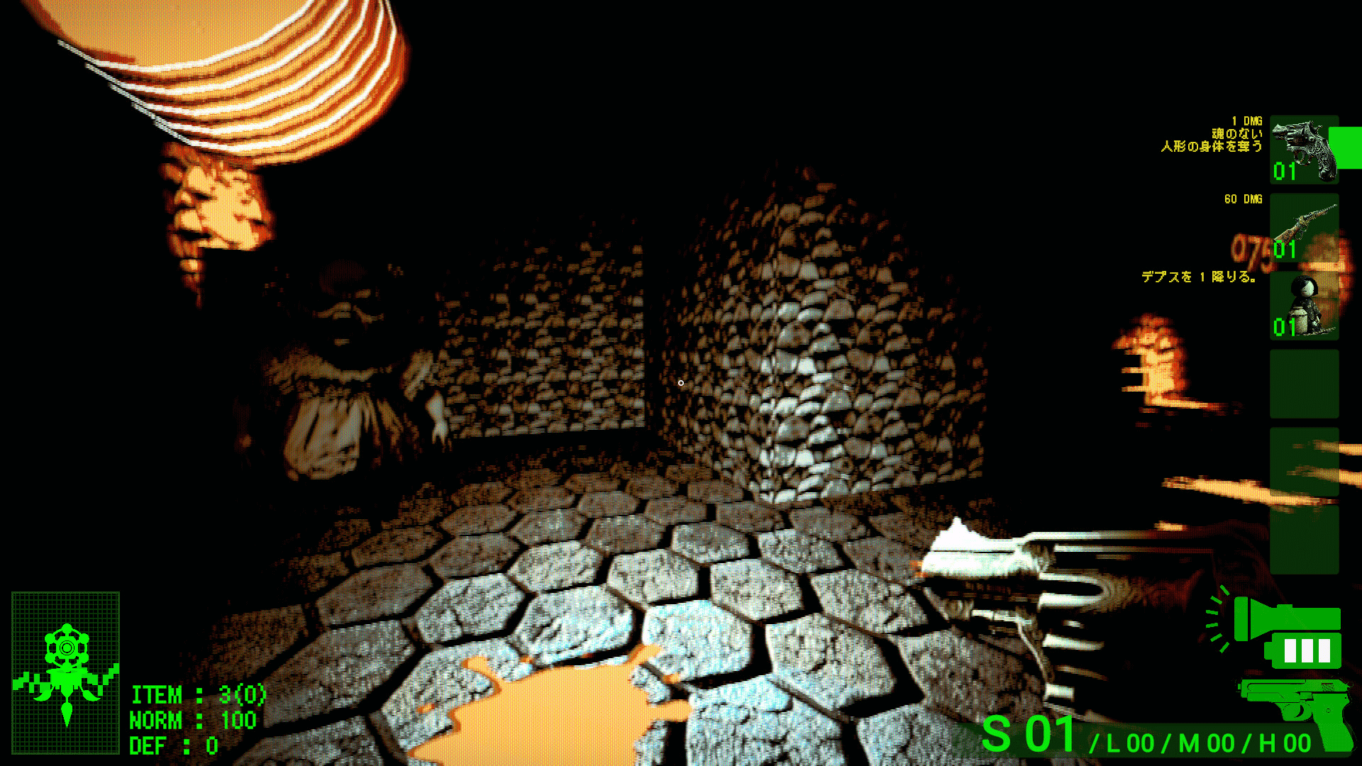 Avoid or defeat dolls that move when you're not looking, take their bodies, and make your way to the 399th dimension. This is a short horror game of fear and strategy, an exploration survival horror.