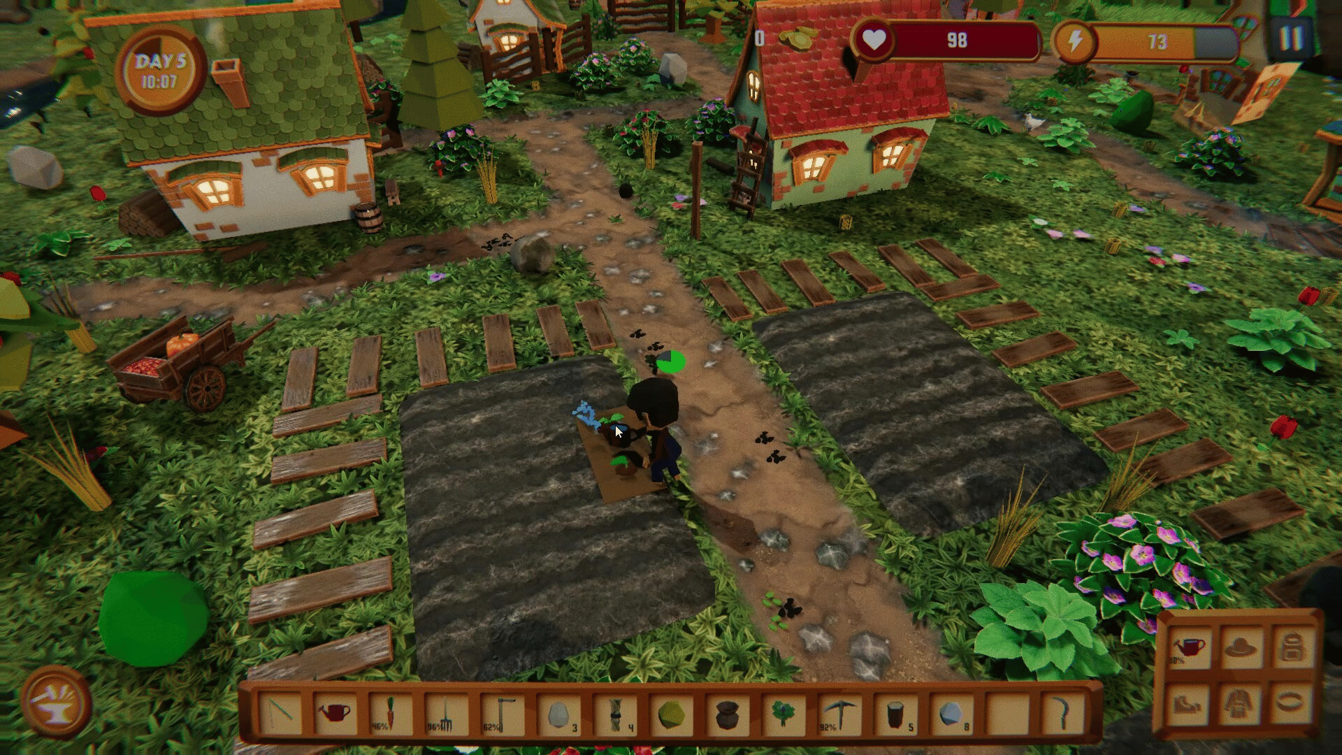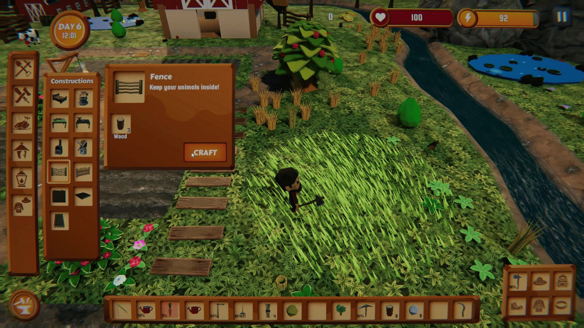 A game for you to create your own farming or simulation game. It includes an inventory, craft, building, growing plants, farm animals and much more.