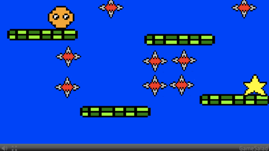 Super Dot Jump is a retro-style action platformer. The game contains 100 single-screen levels, divided into ten worlds. In the first world, simple, rectangular blocks comprise the platforms, which the player must use to reach a star which advances the player to the next level. Each new world introduces new platforms, such as one which the player must move, and one that explodes.