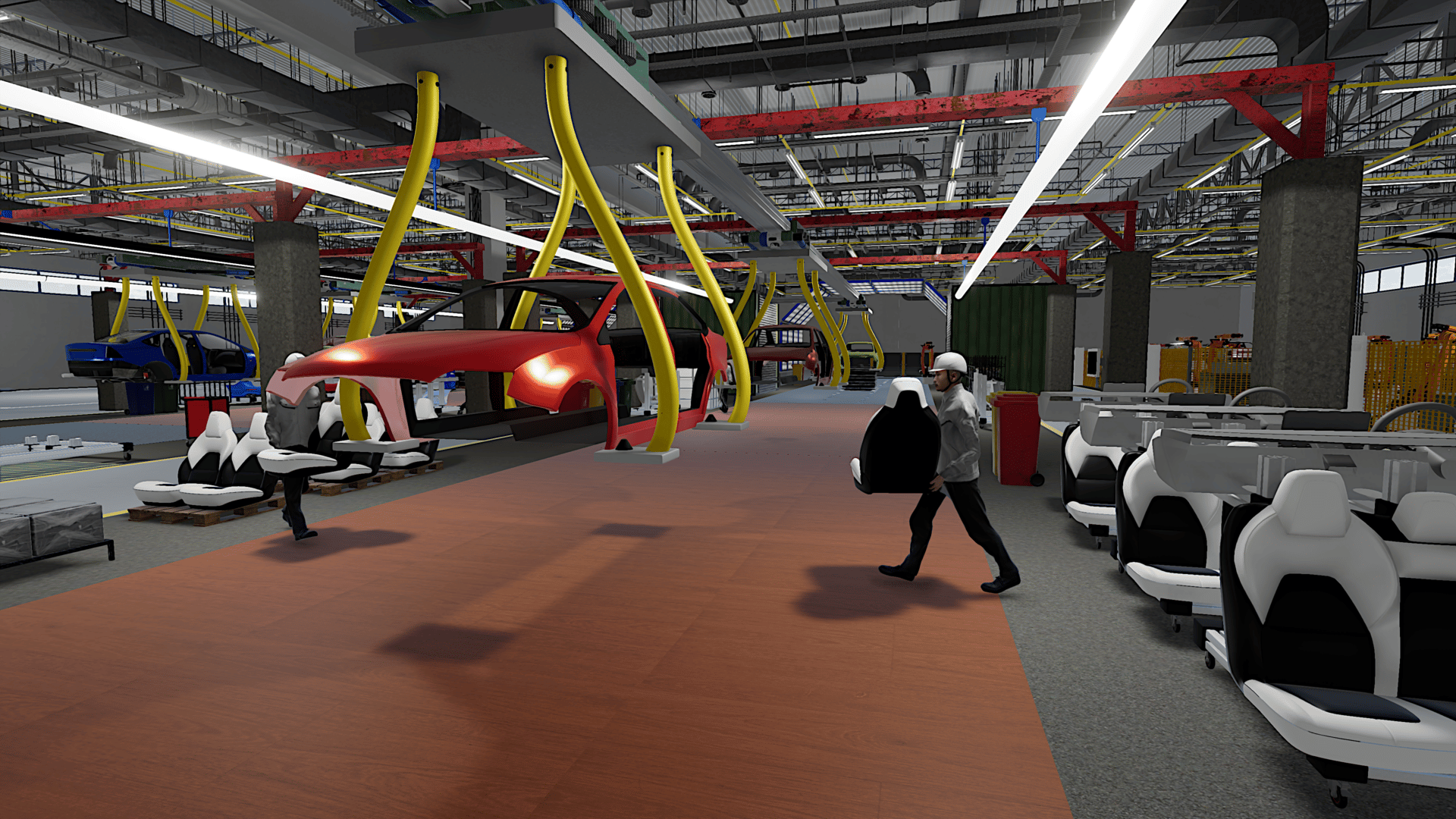 Assemble vehicles on a realistic production line, from the chassis to the final assembly. Optimize your production process to work more efficiently and unlock new models.