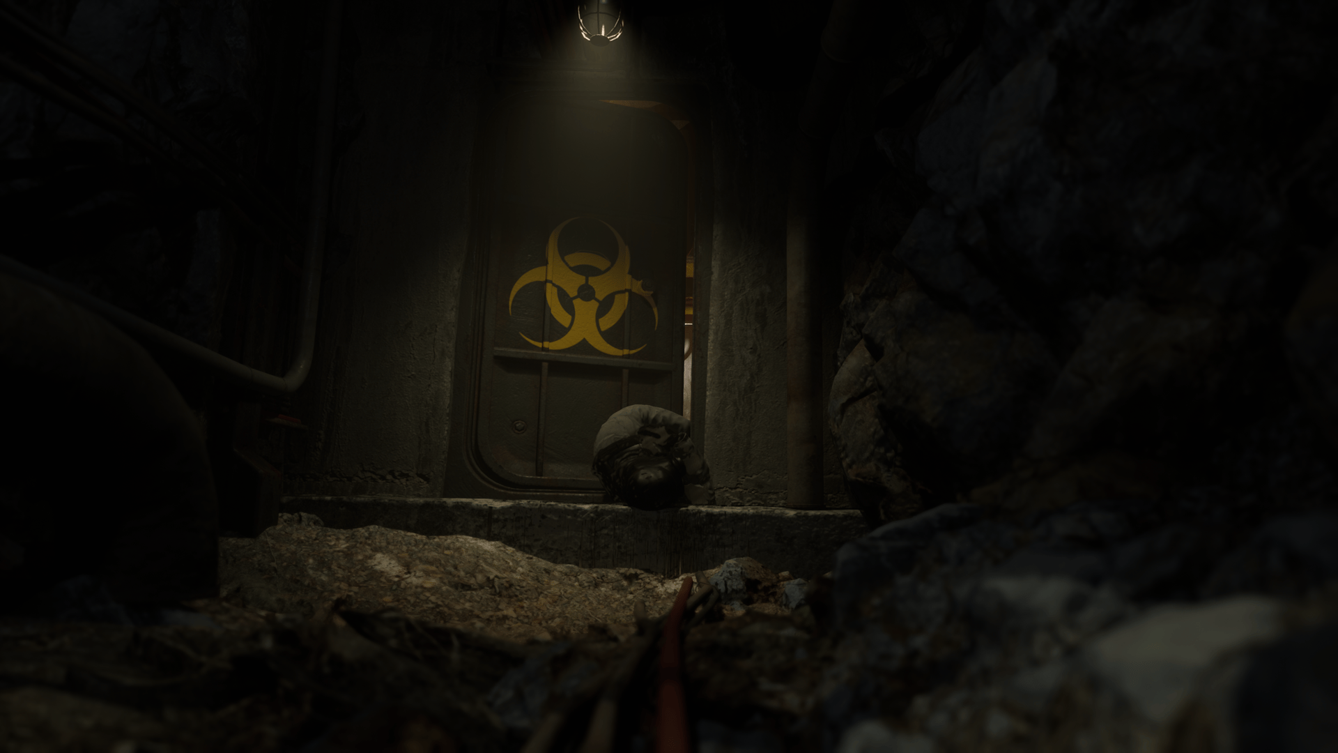 A third-person survival horror action game set in dark, atmospheric underground environments, blending psychological suspense with intense combat.