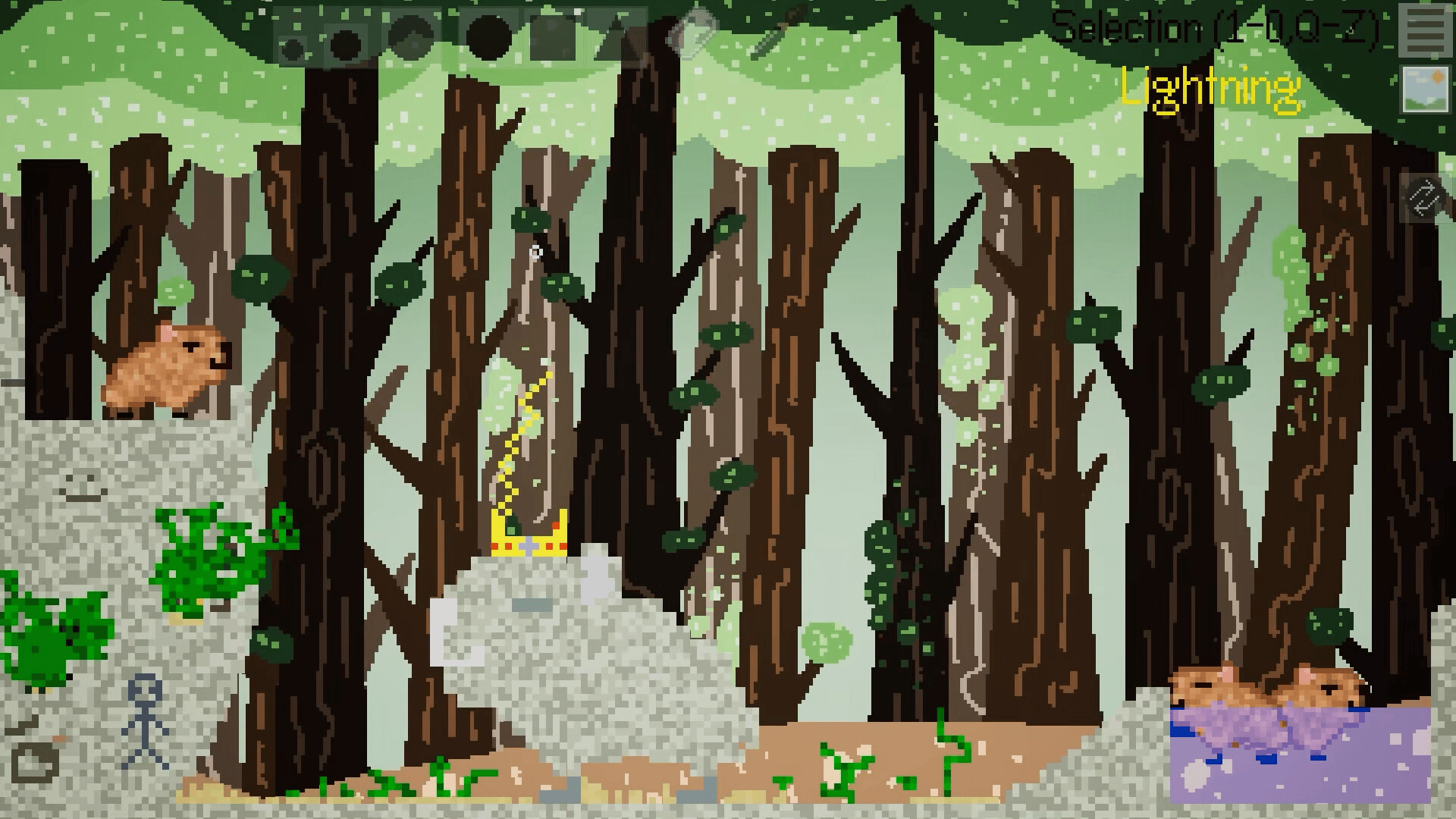 Build, experiment, and share in Squares and Stuff, a pixel-retro sandbox game inspired by classic "falling sand" games. Unleash your creativity in an open-ended world filled with sandbox elements like water, paint, fire, sand, animals, humans, zombies, and a controllable 2D platform character.
