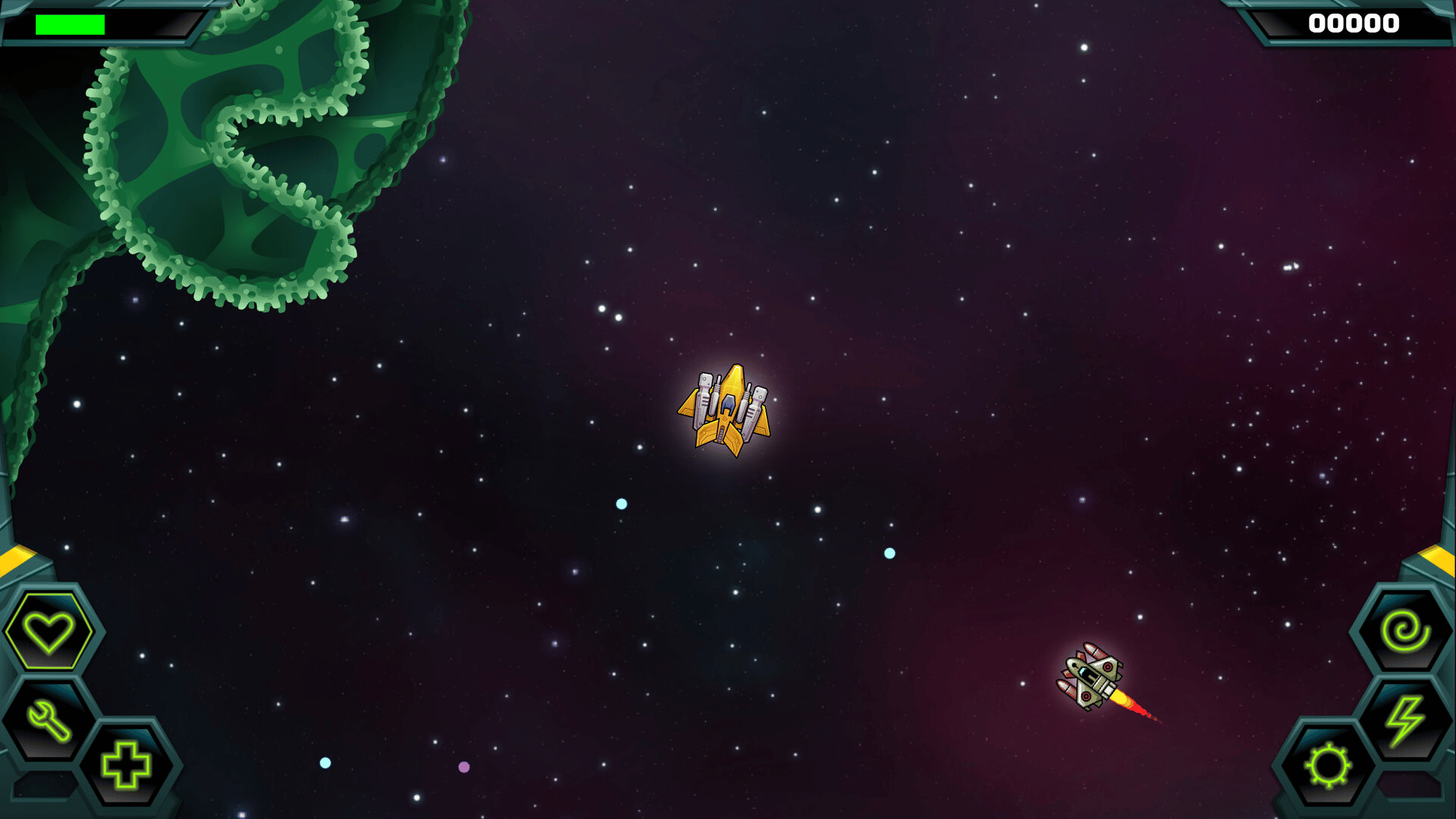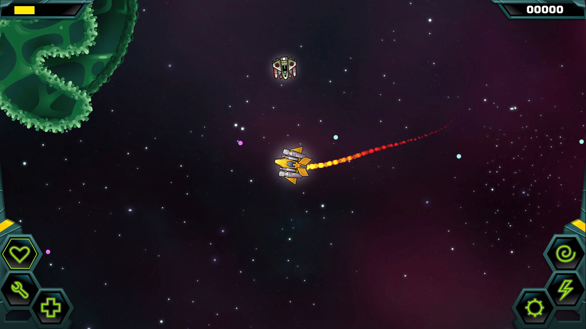 Welcome to Traxion 2! Again you take the role of a daring starship pilot, embarking on a series of break-neck missions into the caves of a dangerous alien planet. This time around, you can join forces with a second player, or challenge each other in deadly deathmatch mode!