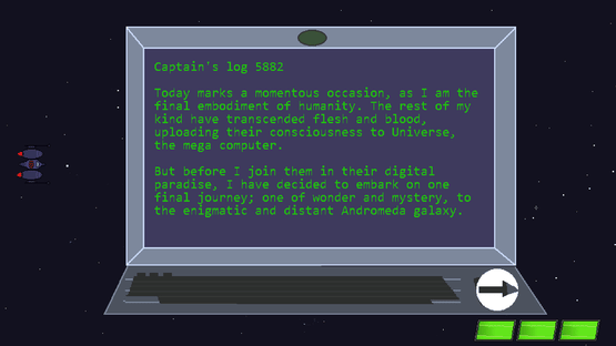 In this casual sci-fi side scrolling space shooter, you are the last human and decide to make a final trip to the Andromeda galaxy before saying your final goodbye to the universe. Conquer enemies, experience the story, and find out what awaits you in Andromeda.